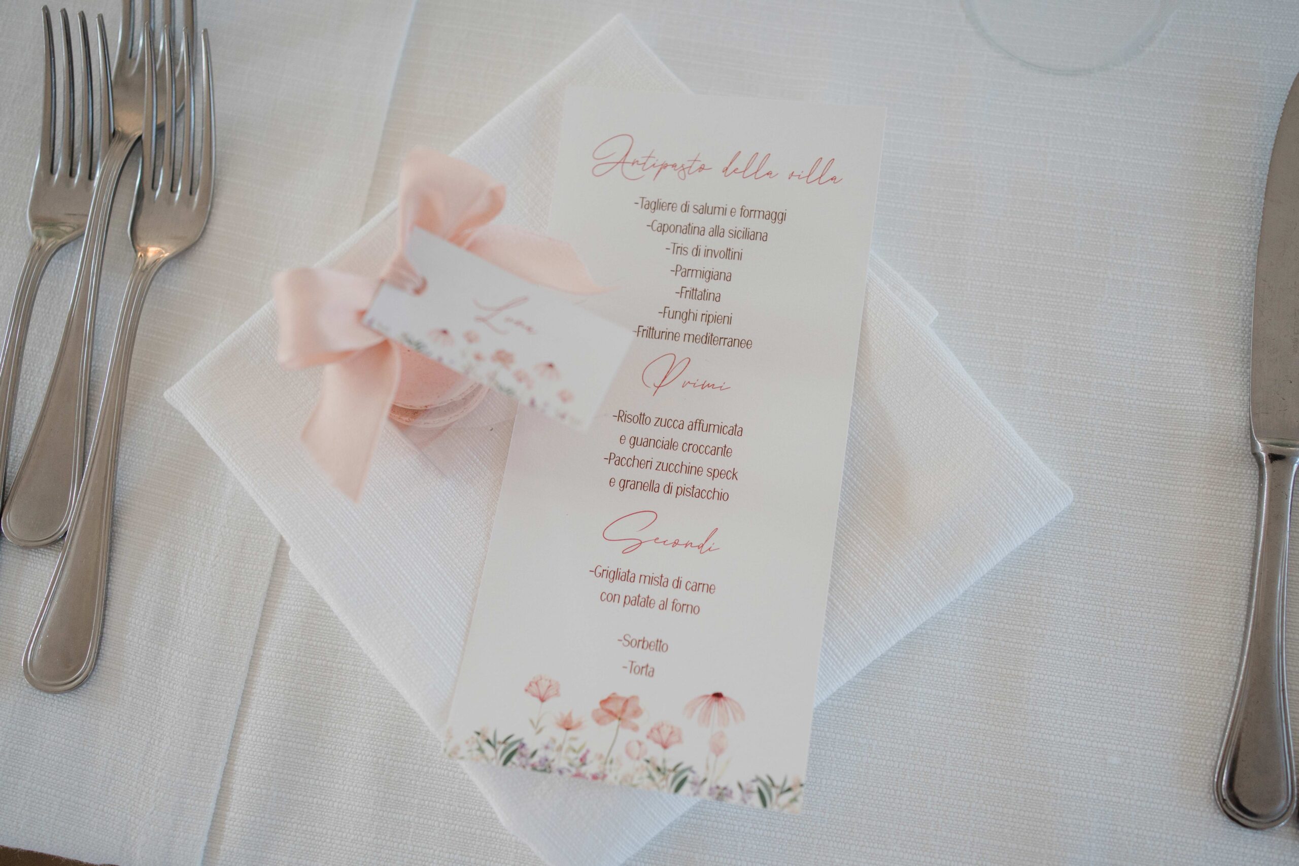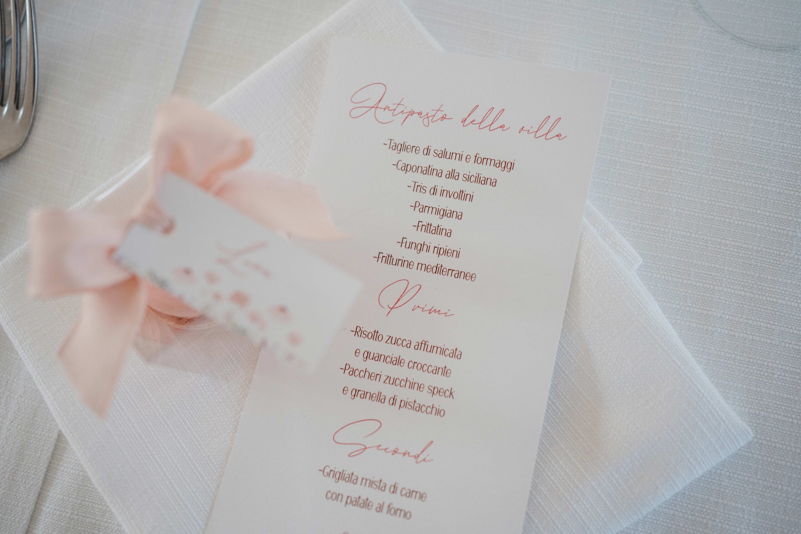 Perfetto per battesimi, matrimoni, compleanni e cene eleganti, il nostro menu aggiunge un tocco di raffinatezza alla presentazione della vostra tavola.