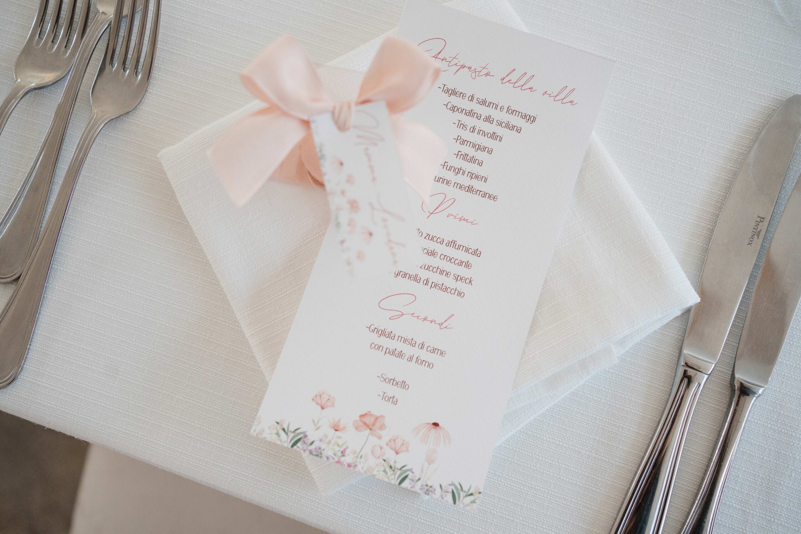 Un menu elegante e curato nei minimi dettagli è l’elemento perfetto per valorizzare la tua tavola.