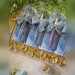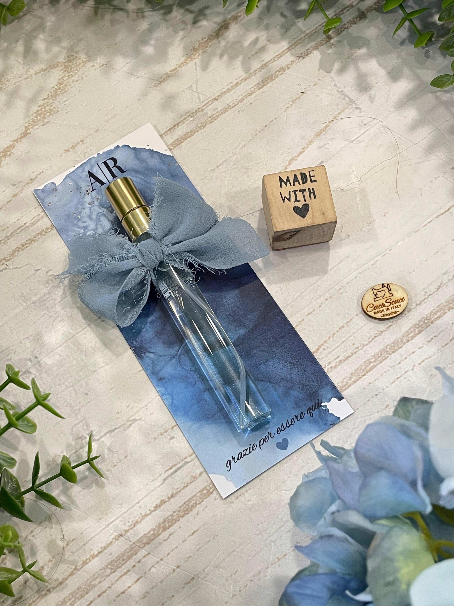 Il profumo da 10 ml è applicato su cartoncino personalizzato con grafica e frase dedicate, studiato per coordinarsi armoniosamente con lo stile e i colori dell’evento. All’interno del flacone è racchiusa una fragranza floreale delicata, fresca e piacevole, pensata per lasciare un ricordo profumato e raffinato.