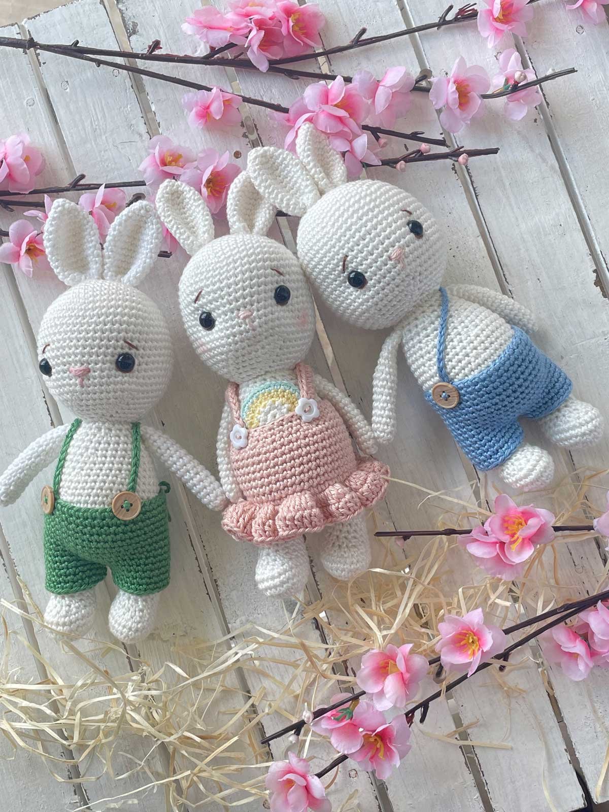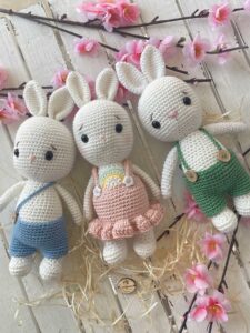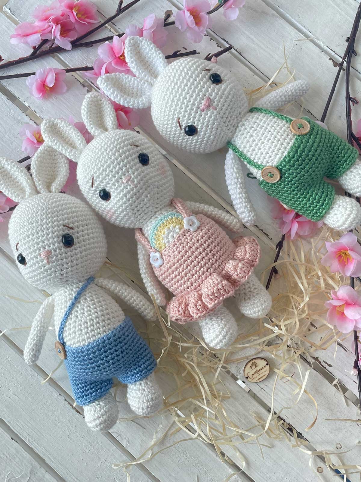 Coniglietto, realizzata in cotone, in 2 versioni maschili e 1 femminile.