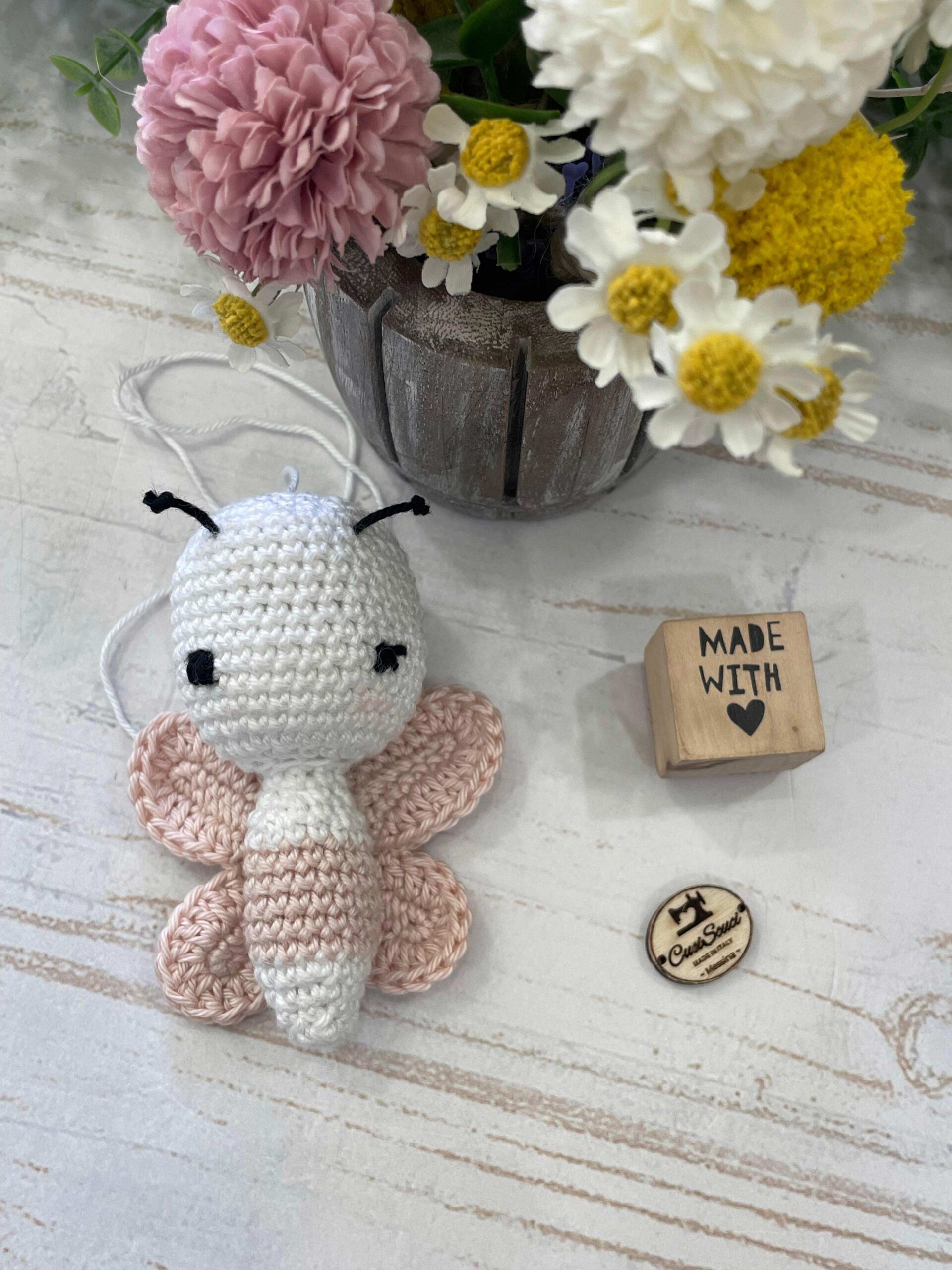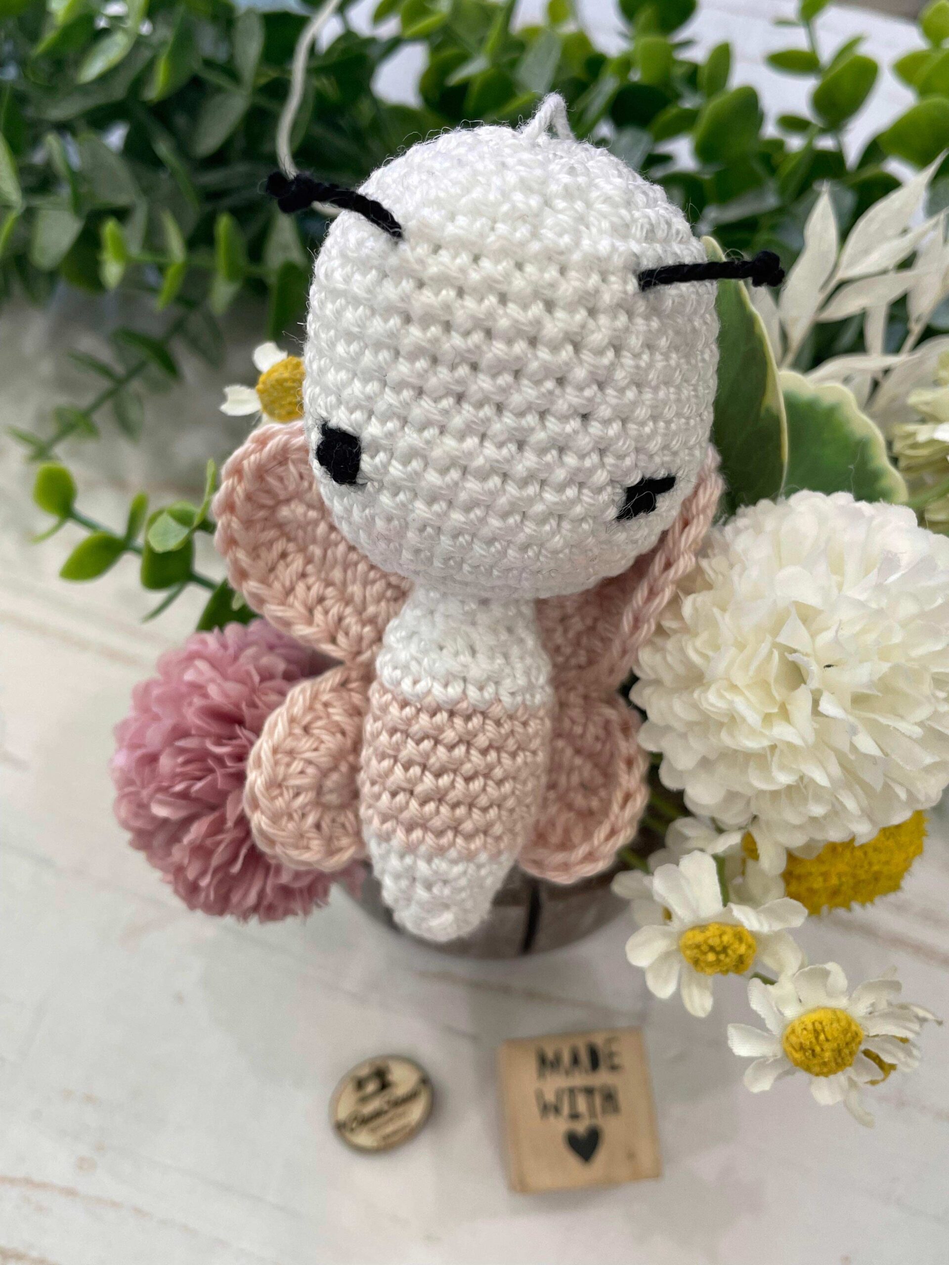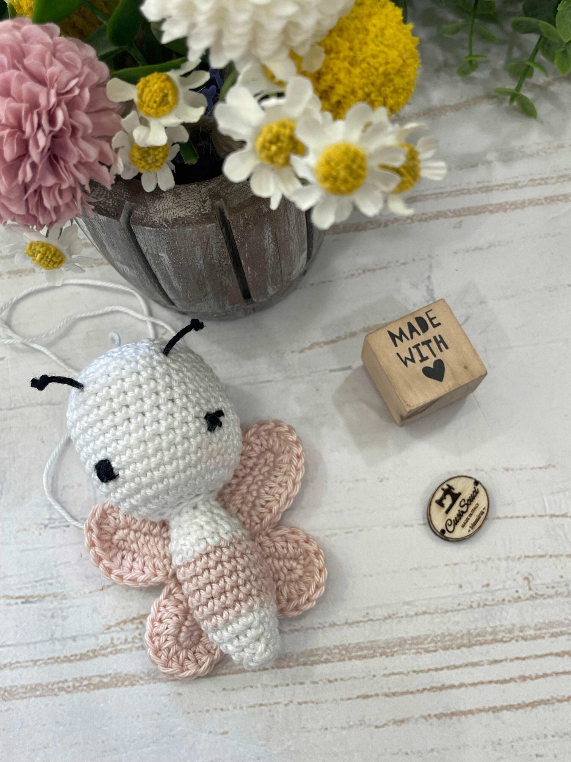 Ogni farfalla è realizzata in cotone di alta qualità, con ali rosa e dettagli curati, per un risultato tenero e raffinato.