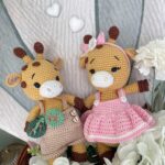 Questa tenera coppia di giraffe, proposta nelle versioni Boy o Girl, è lavorata all’uncinetto con cura artigianale e attenzione ai dettagli. La giraffa femmina indossa un delicato abitino rosa con cerchietto coordinato, mentre la versione maschile è caratterizzata da una graziosa salopette nei toni del marroncino, arricchita da una decorazione a foglie. Due creazioni armoniose e complementari, pensate per accompagnare momenti speciali con dolcezza e raffinatezza.
