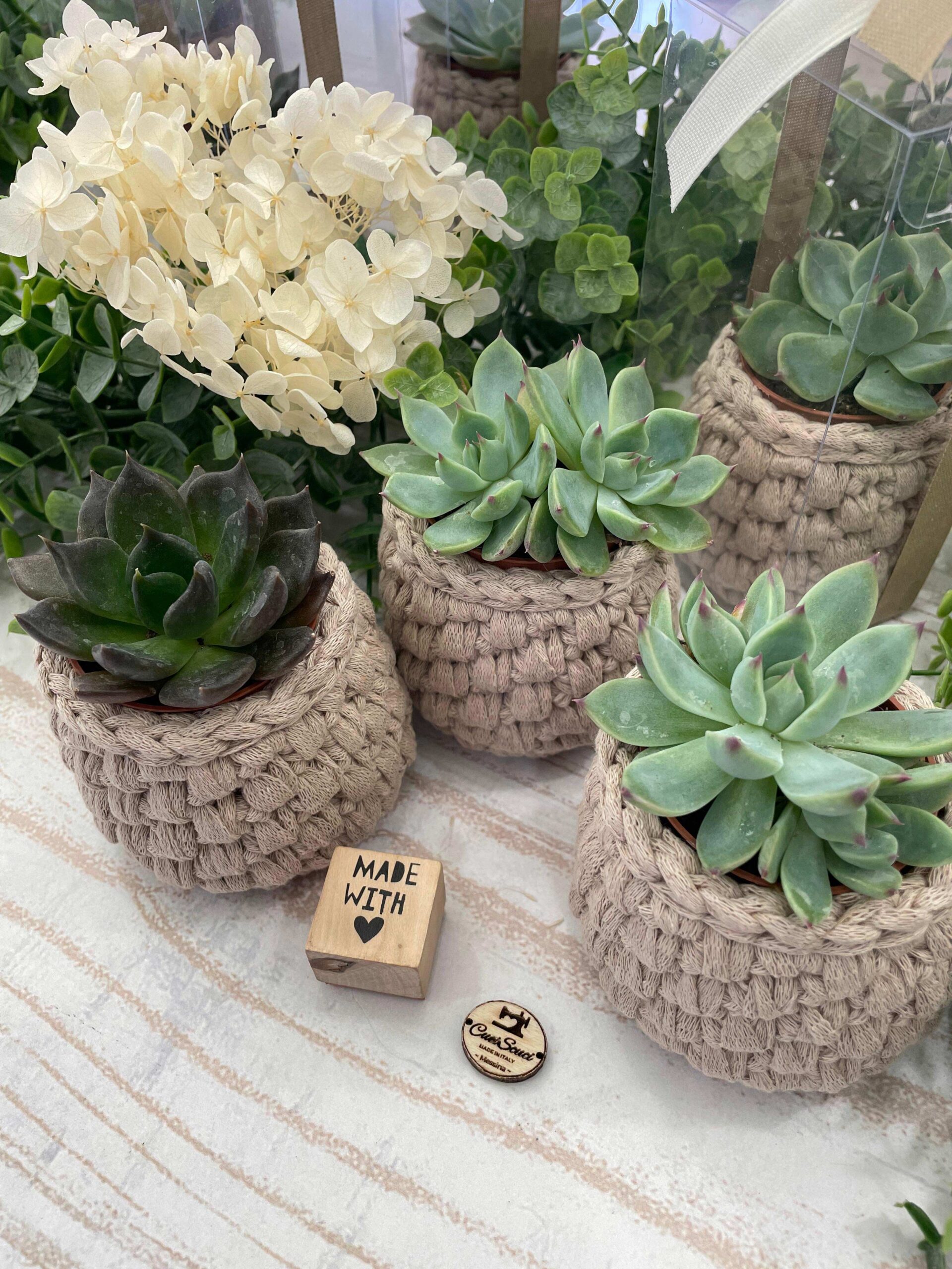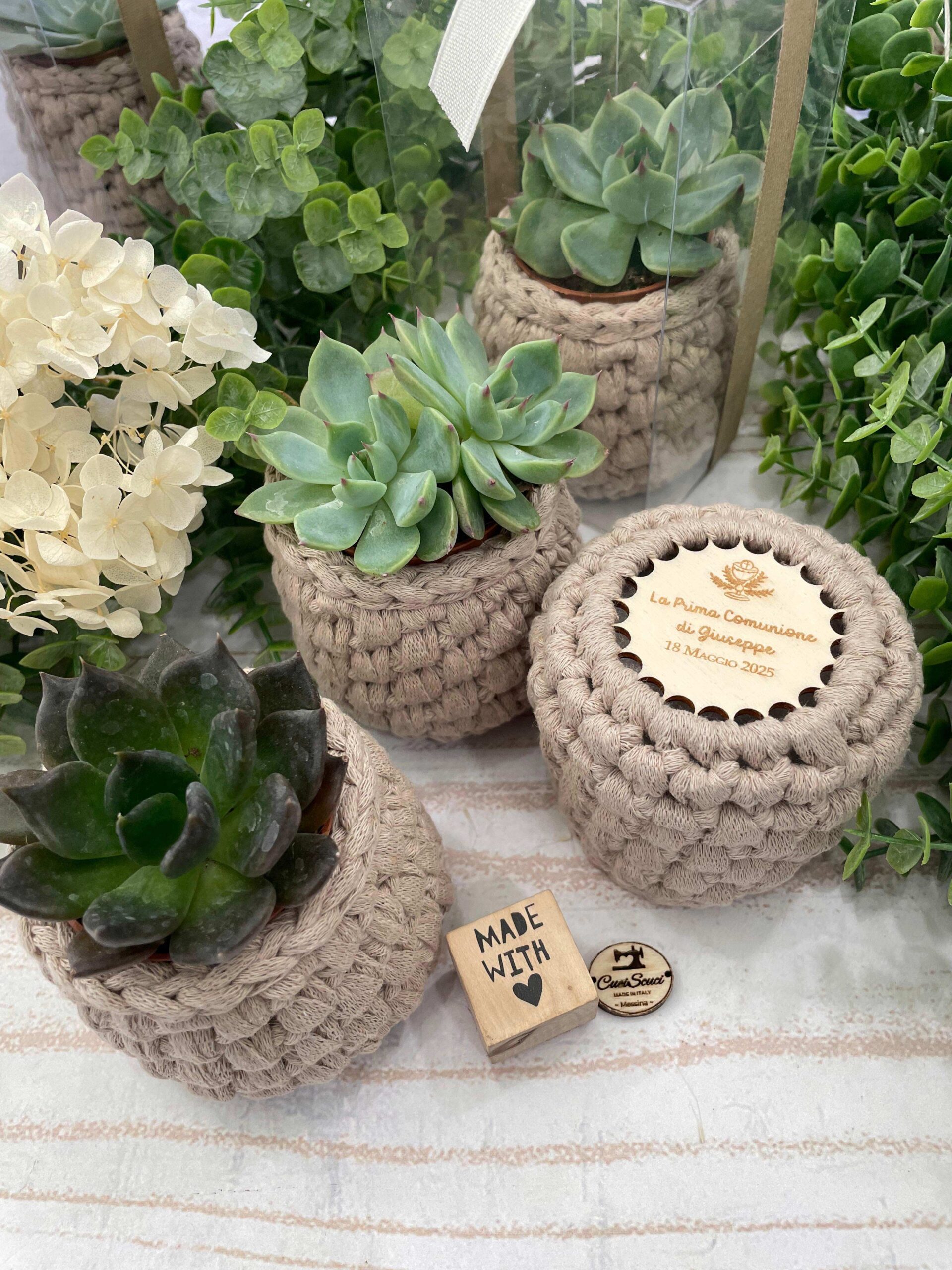 ✨ Porta Piantina in Crochet Artigianale con Base in Legno Personalizzabile ✨