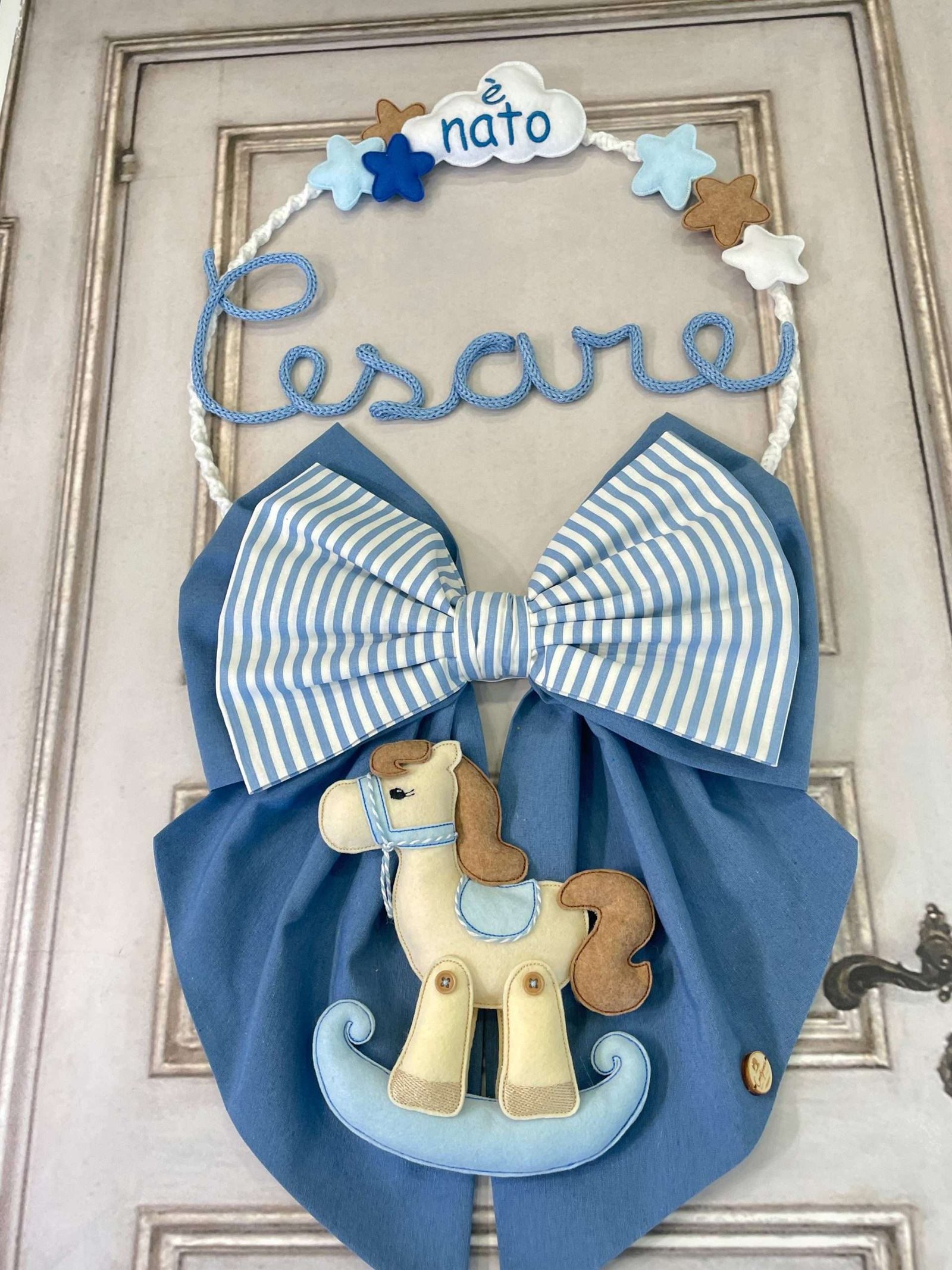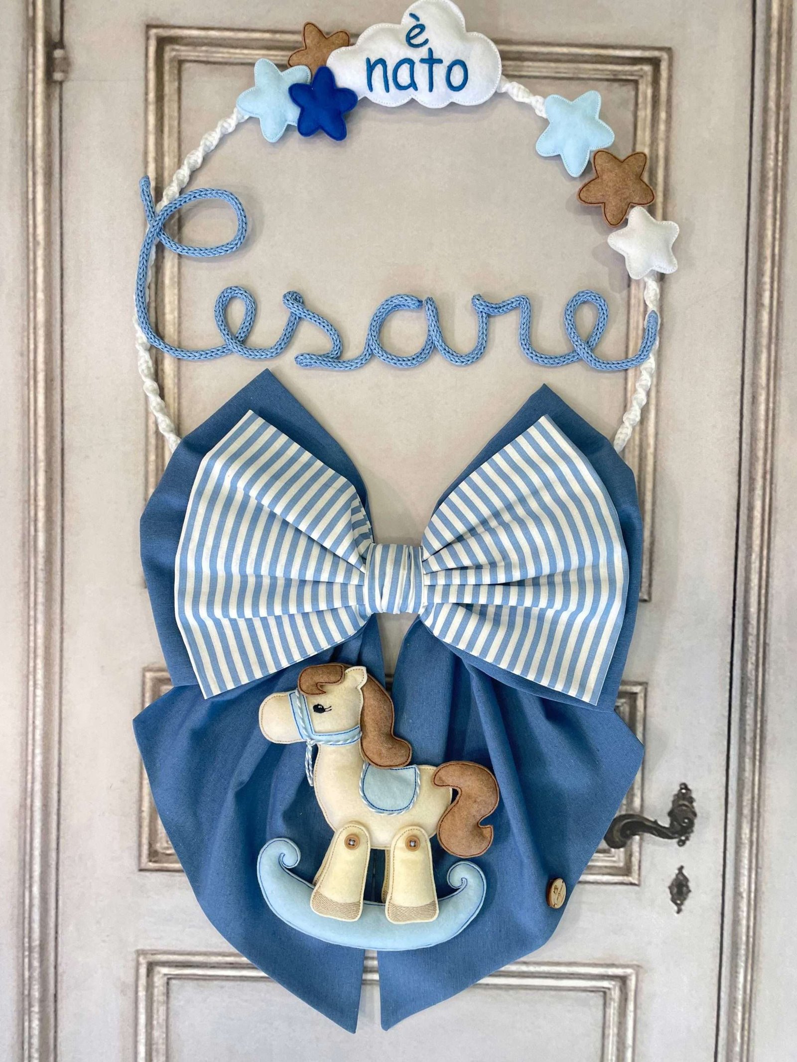 ✨ Fiocco Nascita Artigianale con Cavalluccio a Dondolo ✨