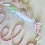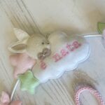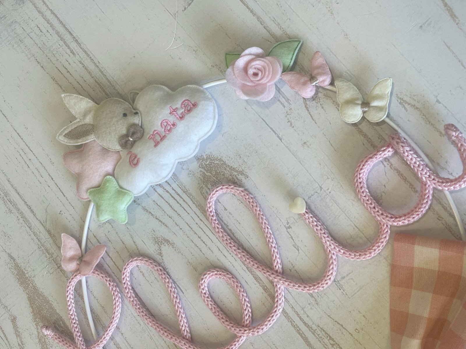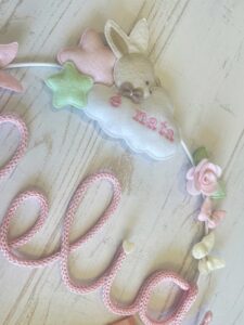 Un dolcissimo fiocco nascita realizzato interamente a mano dalla nostra sartoria, con cura artigianale e attenzione ai dettagli.