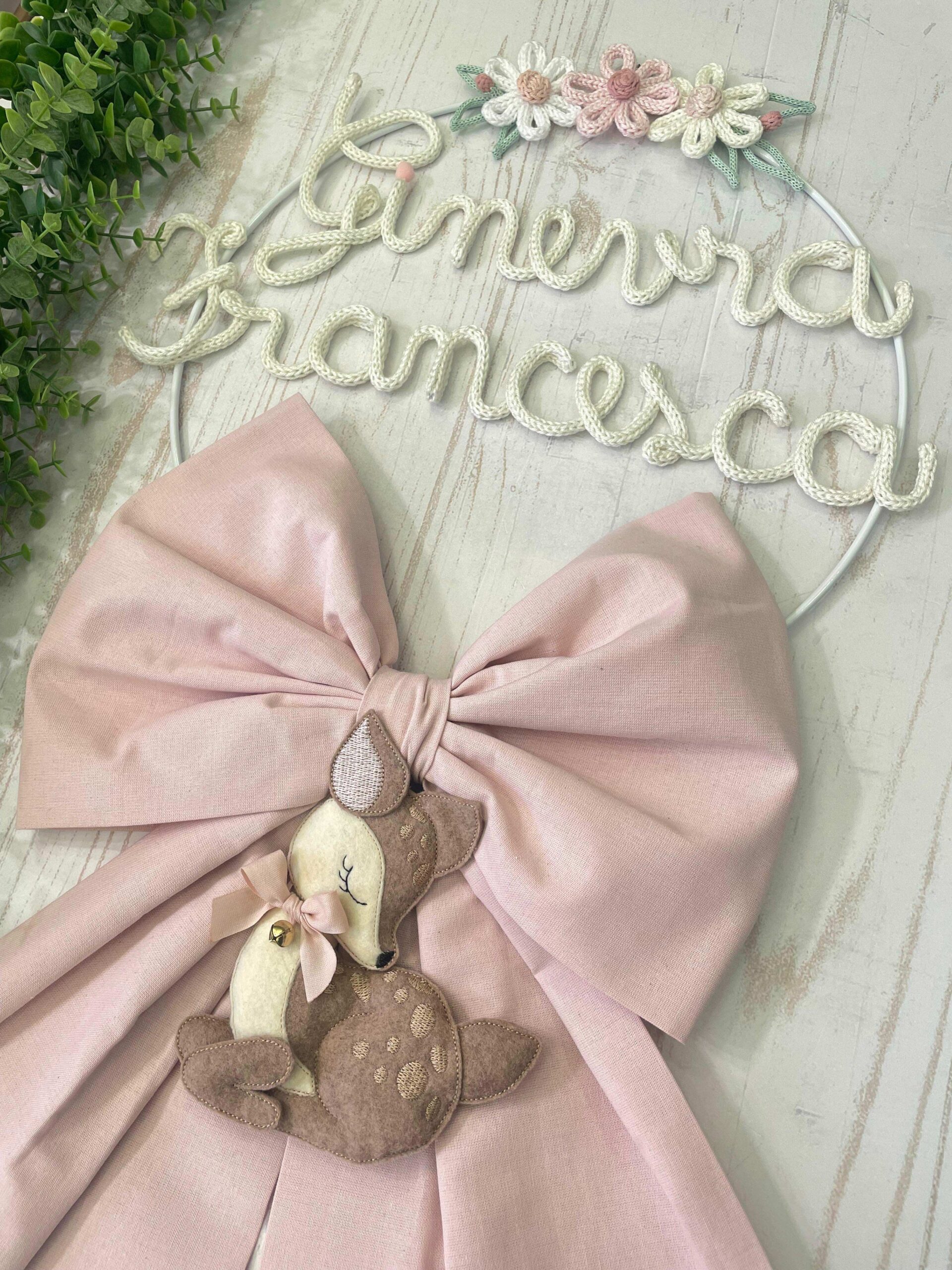 ✨ Fiocco Nascita – Cerbiatto Tricotin e Fiori