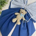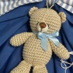 A completare la creazione, un tenero orsetto realizzato con la tecnica dell’amigurumi, simbolo di dolcezza e artigianalità.