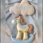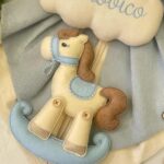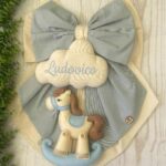 Recensisci per primo “Fiocco Nascita Bimbo Nuvola e Mandorla con Ricamo e Cavallo a Dondolo”