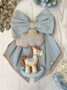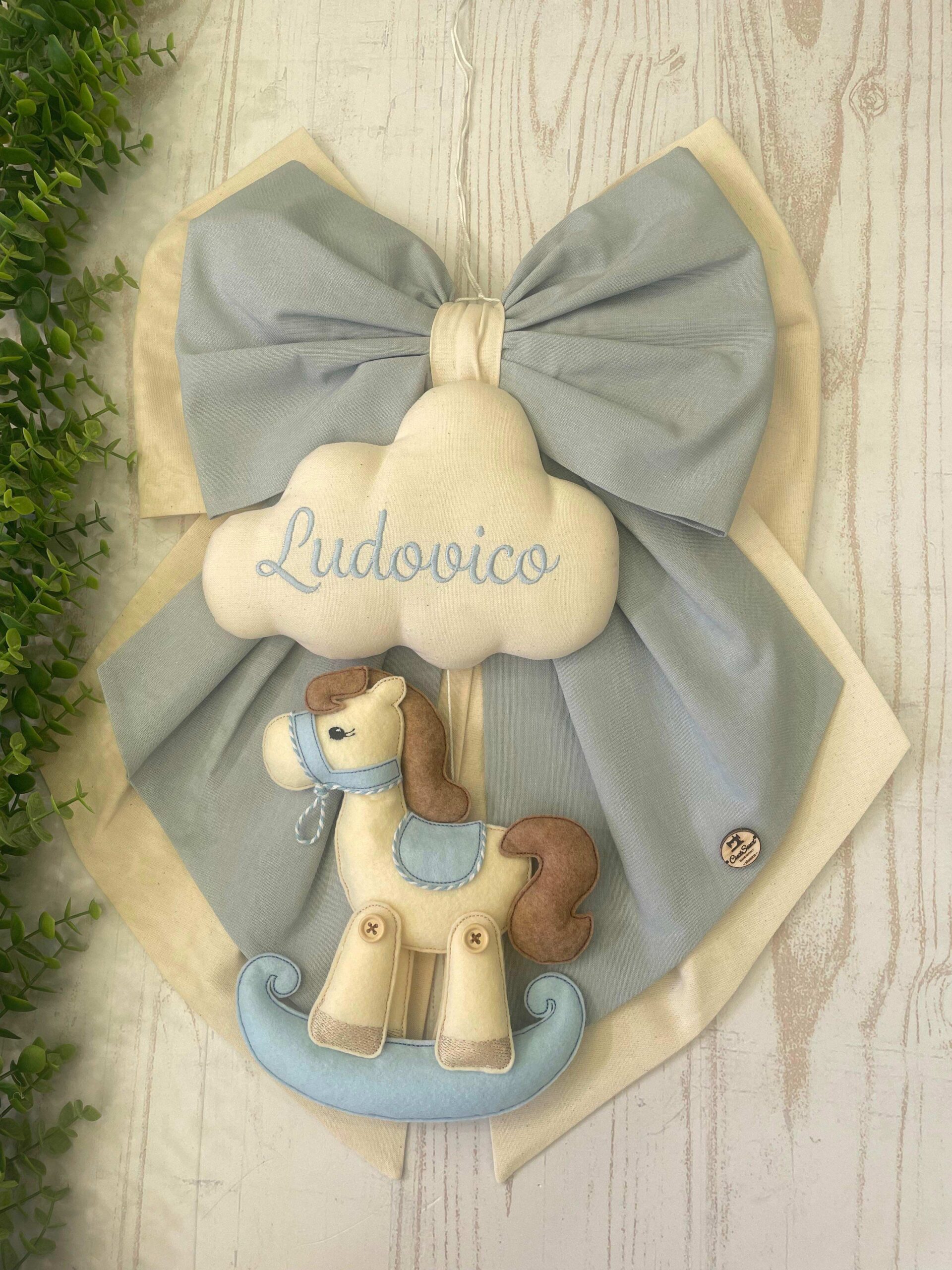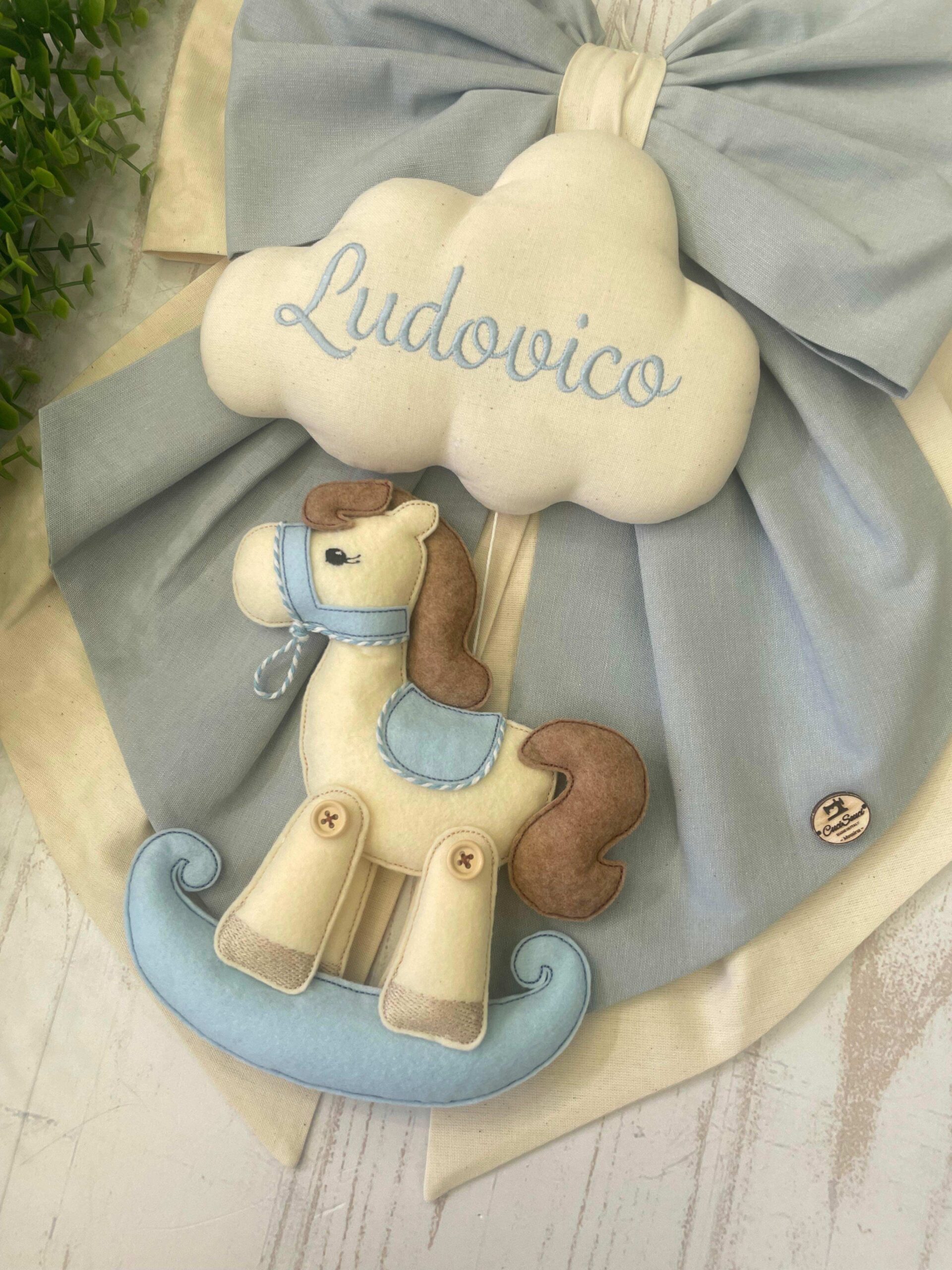 ✨ Fiocco Nascita Artigianale con Cavalluccio a Dondolo ✨