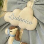 Un fiocco nascita realizzato interamente a mano nella nostra sartoria, con la cura e la dolcezza che rendono ogni creazione unica.