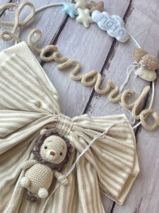 ✨ Fiocco Nascita Artigianale con Nome in Tricotin e Leoncino Amigurumi ✨