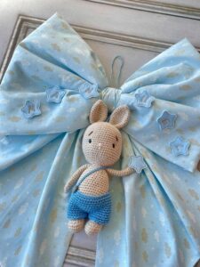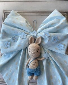 Fiocco Nascita Celeste con Coniglio Amigurumi