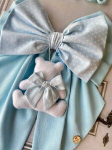 Fiocco in cotone celeste con fiocco decorativo a cuoricini