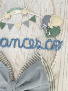 Un dolcissimo fiocco nascita artigianale, realizzato interamente a mano dalla nostra sartoria con materiali di alta qualità e cura per i dettagli.