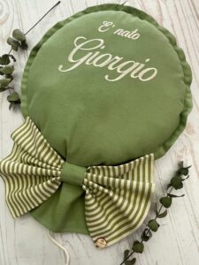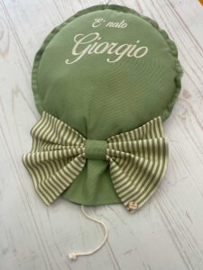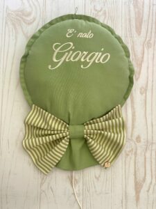 Un fiocco nascita originale, realizzato interamente a mano dalla nostra sartoria.
