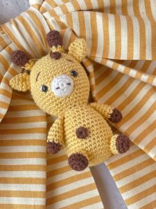 A completare la creazione, una tenerissima giraffa amigurumi, simbolo di dolcezza e artigianalità.
