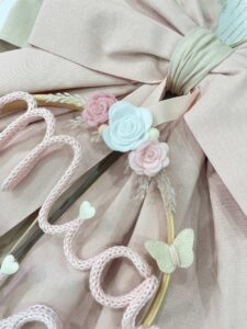 Un fiocco nascita realizzato interamente a mano nella nostra sartoria, con la cura e l’eleganza che contraddistinguono ogni nostra creazione.