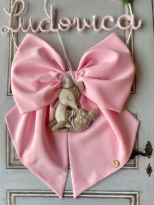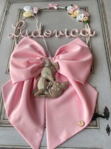 Un fiocco nascita elegante e artigianale, realizzato interamente a mano dalla nostra sartoria.