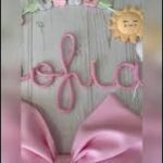 La frase “È nata” è ricamata su piccoli fiorellini posizionati nella parte superiore del cerchio, per un tocco di dolcezza in più.