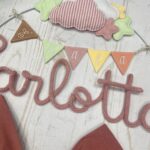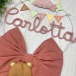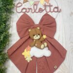 Un fiocco nascita originale, creato a mano dalla nostra sartoria con cotone terracotta e dettagli curati nei minimi particolari.