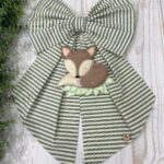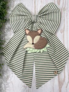 Realizzato in cotone verde e panna a fantasia rigata, questo fiocco unisce semplicità e raffinatezza, donando un tocco naturale e delicato all’arrivo del tuo bimbo.