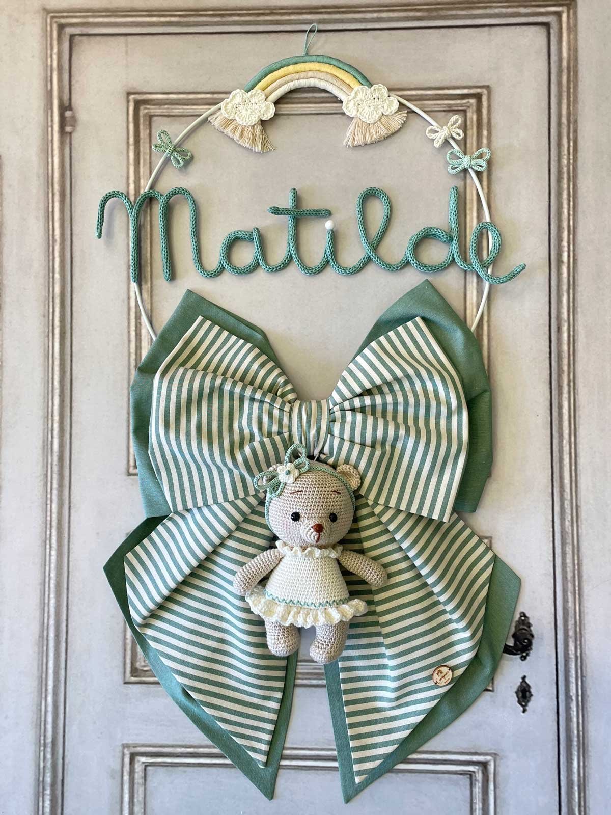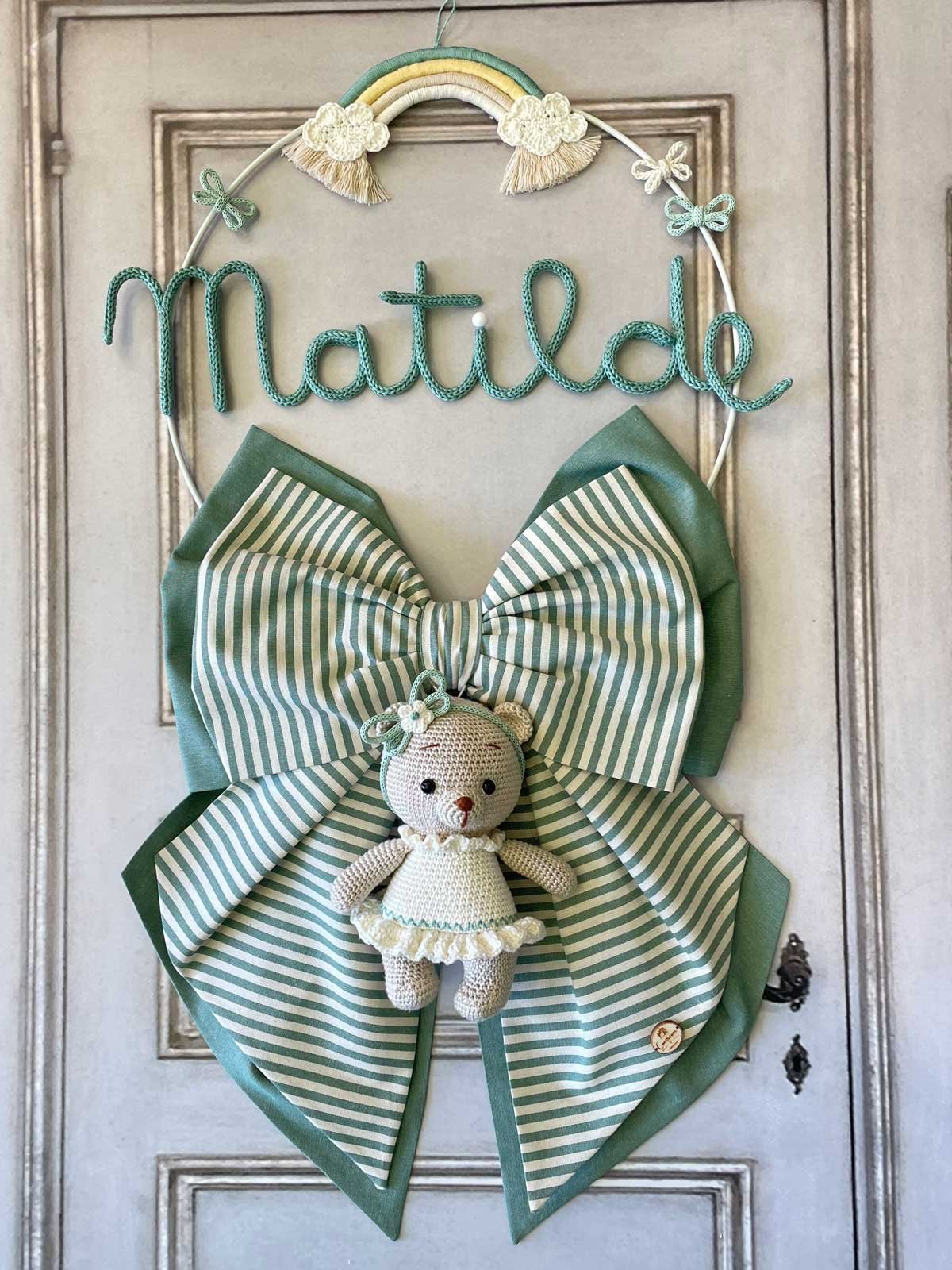✨ Fiocco Nascita Orsetta Verde Salvia ✨