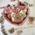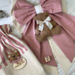 Una collezione raffinata e delicata, perfetta per accogliere con dolcezza una nuova vita. Ogni articolo è realizzato in morbido cotone naturale nei toni del rosa antico e crema, impreziosito da un un orsetto in tessuto bouclè e una targhetta in legno personalizzata.