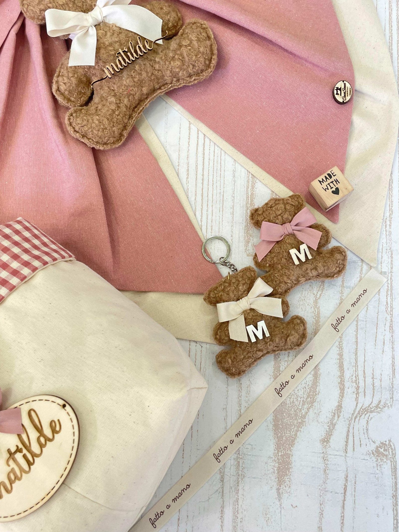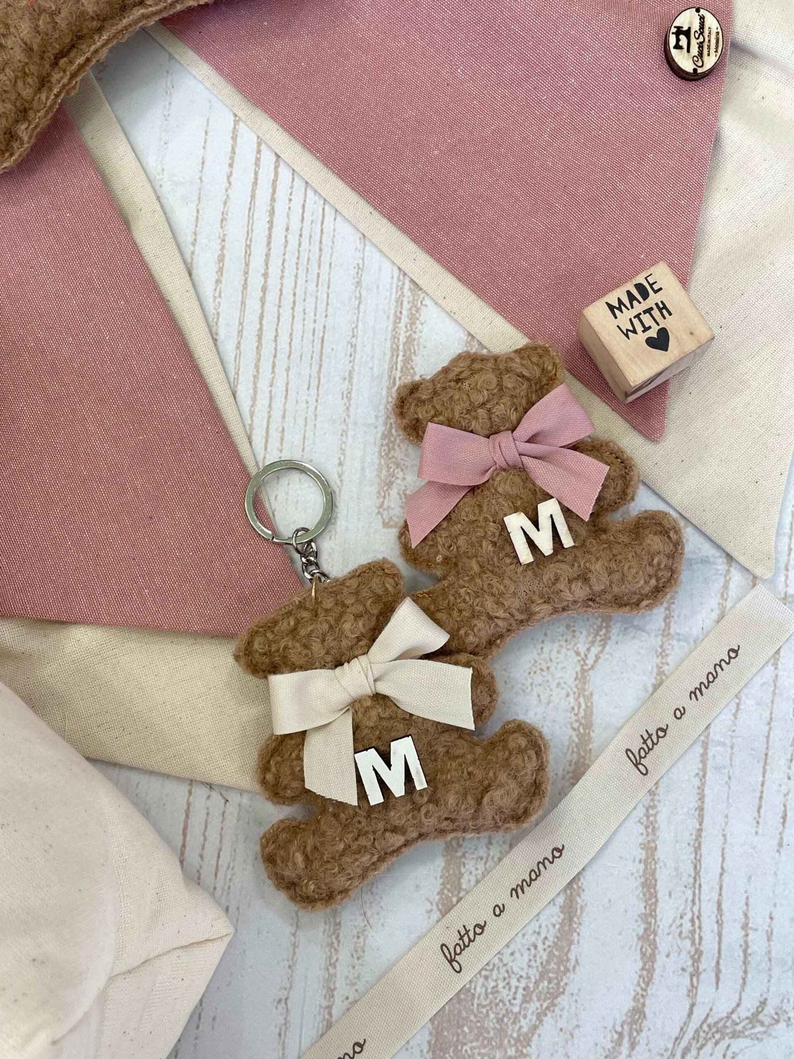 - Orsetto portachiavi in tessuto bouclè