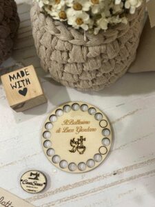 Base in legno personalizzata realizzata con taglio laser, per porta piantine in crochet.
