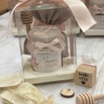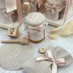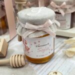 Un’elegante bomboniera che unisce dolcezza e cura artigianale, pensata per rendere unico ogni evento speciale. Il barattolo di miele da 100 g è impreziosito da etichetta personalizzata a tema orsetto e da un delicato copri barattolo in tela di cotone ricamato con l’iniziale del festeggiato/a, per un risultato raffinato e armonioso.