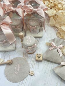 Recensisci per primo “Barattolo di Miele con Etichetta Orsetto e Ricamo Iniziale Rosa e Sacchetto “Confezione Luxury””