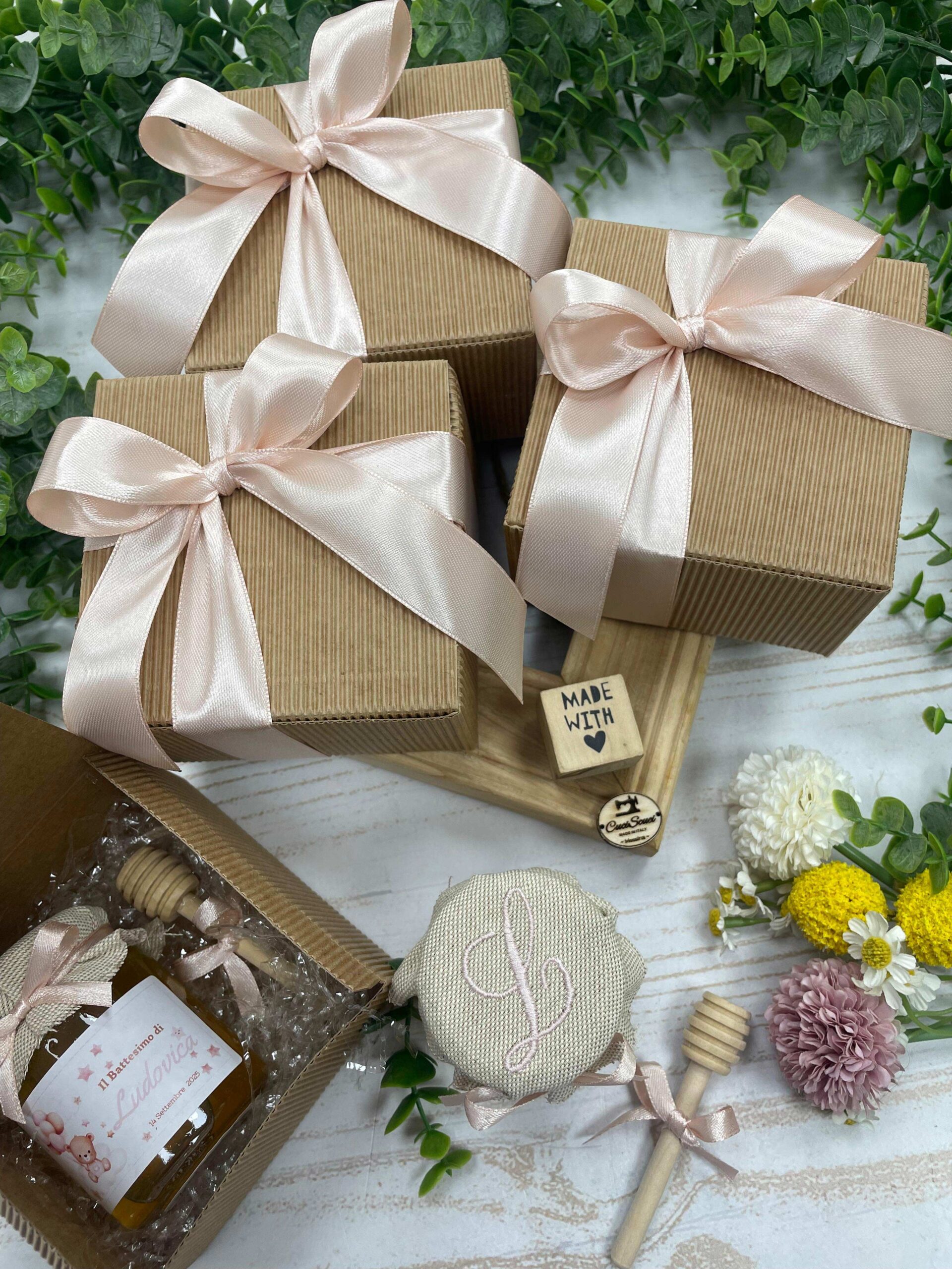 Ogni confezione è realizzata interamente a mano e quindi personalizzabile.