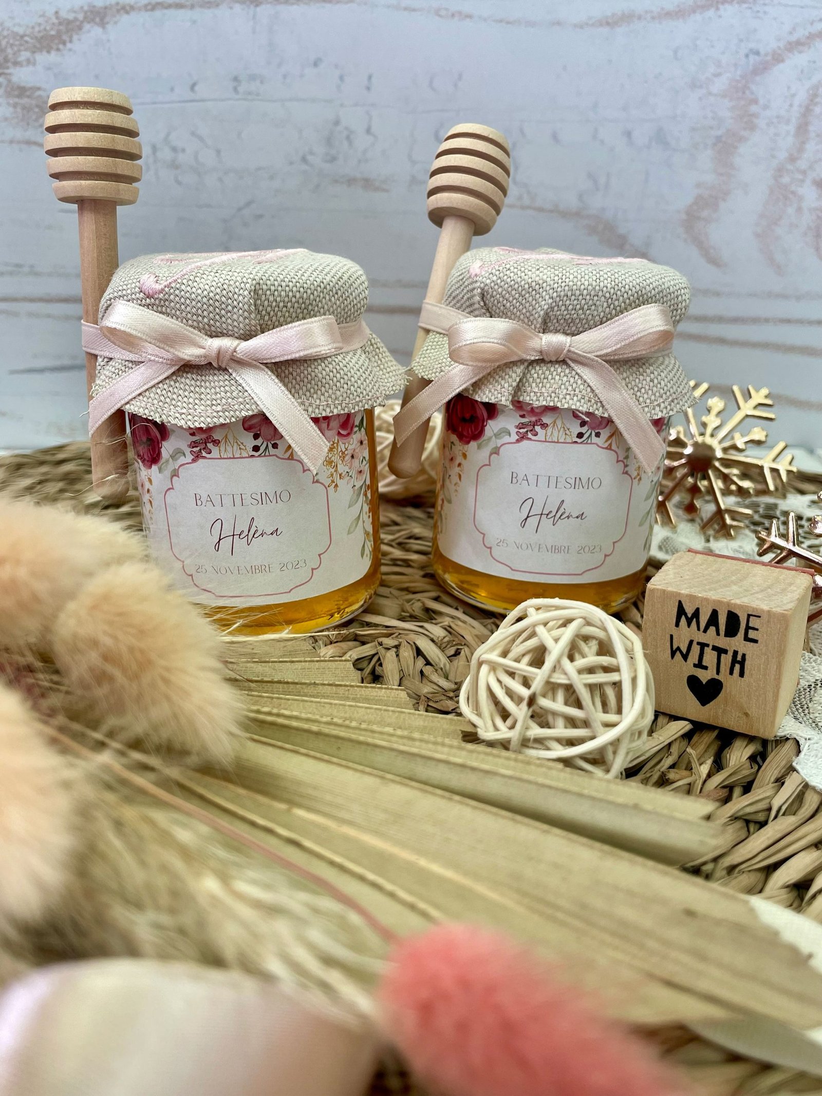 barattolo di miele, copri barattolo non ricamato, spargi miele, etichetta personalizzata e scatola