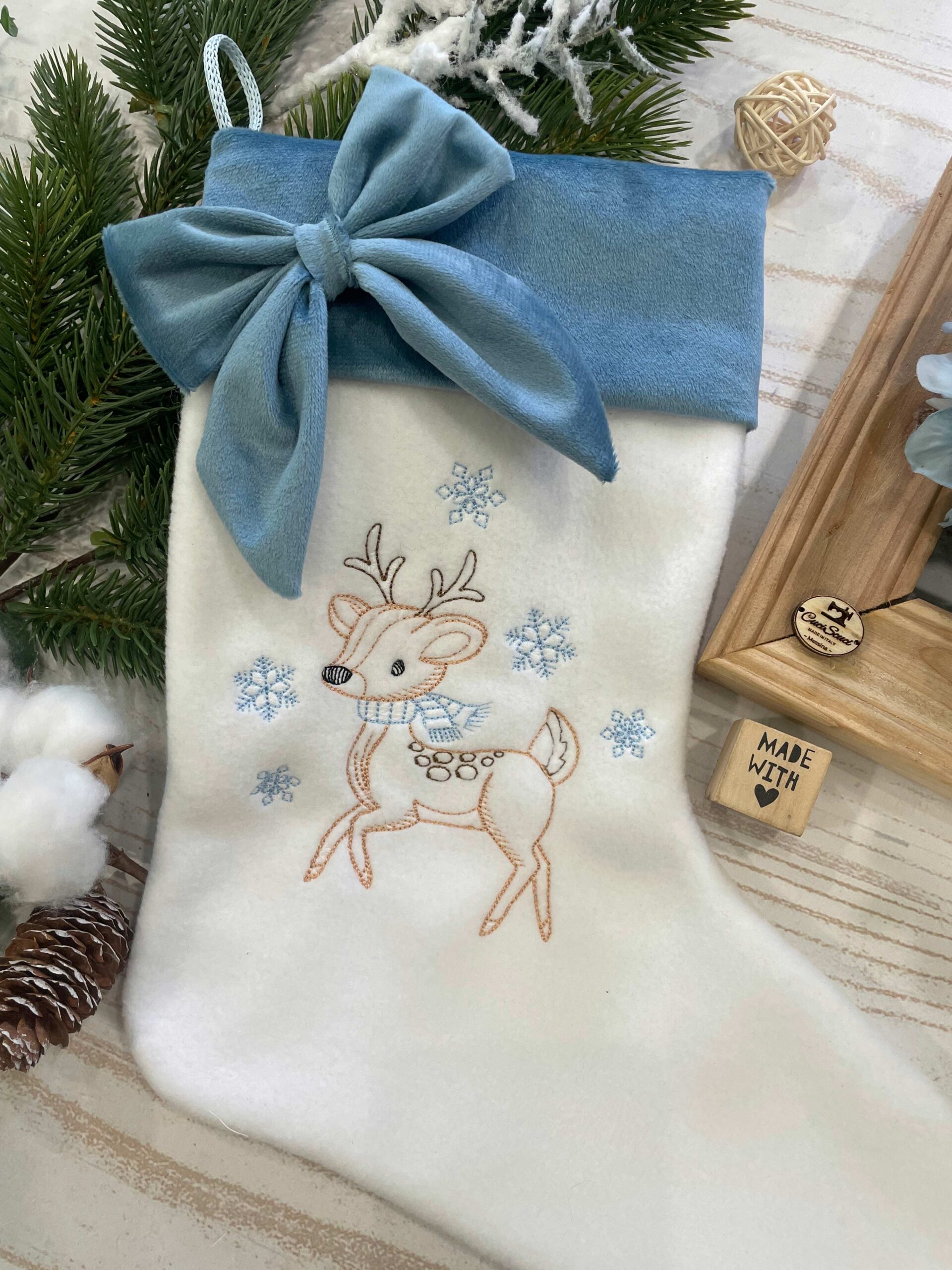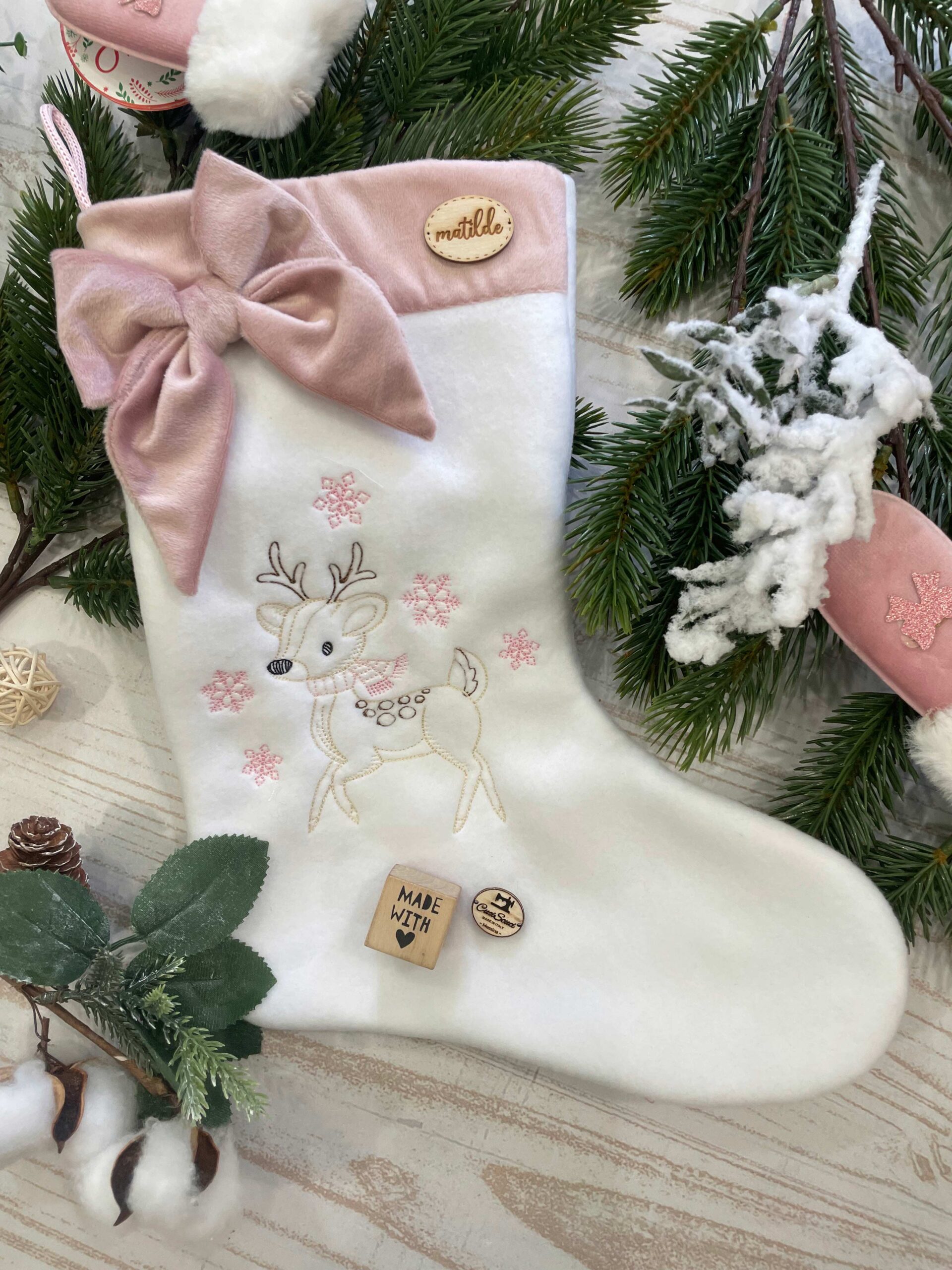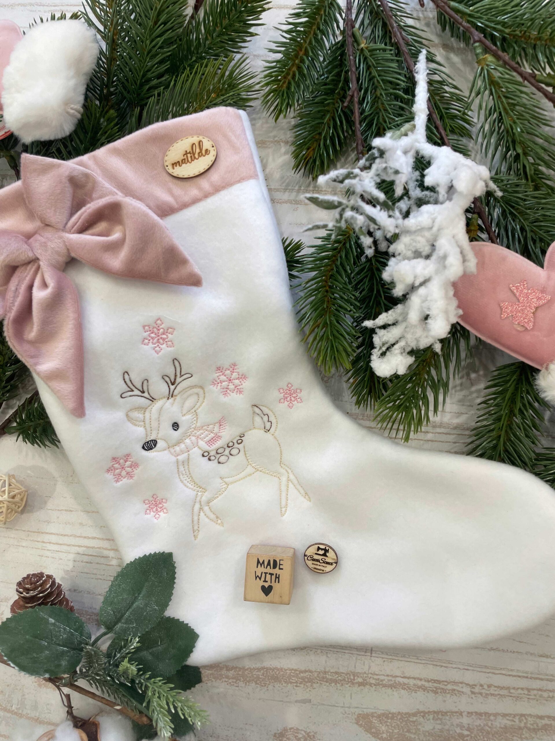 Calza natalizia in pile con ricamo cerbiatto ✨