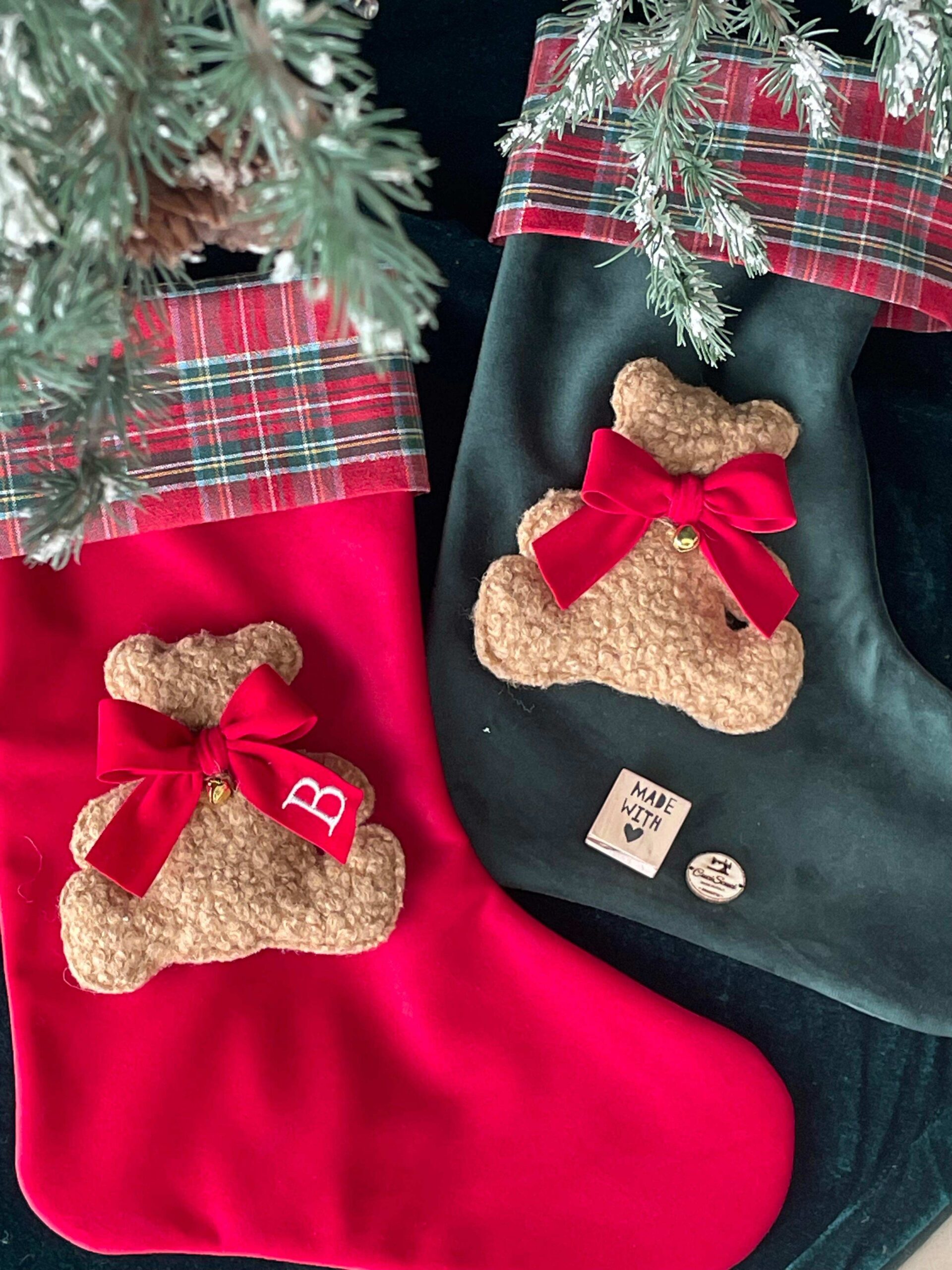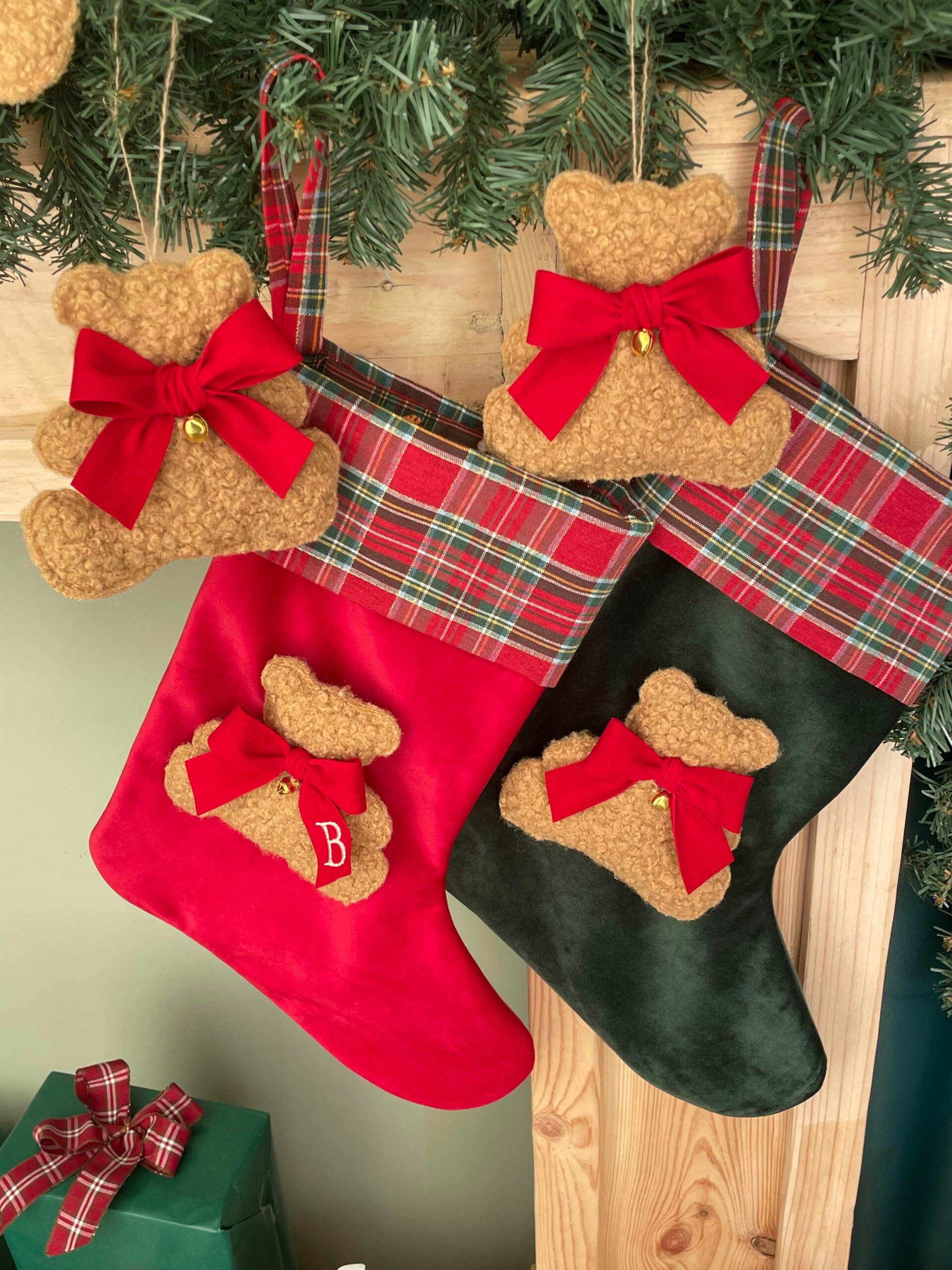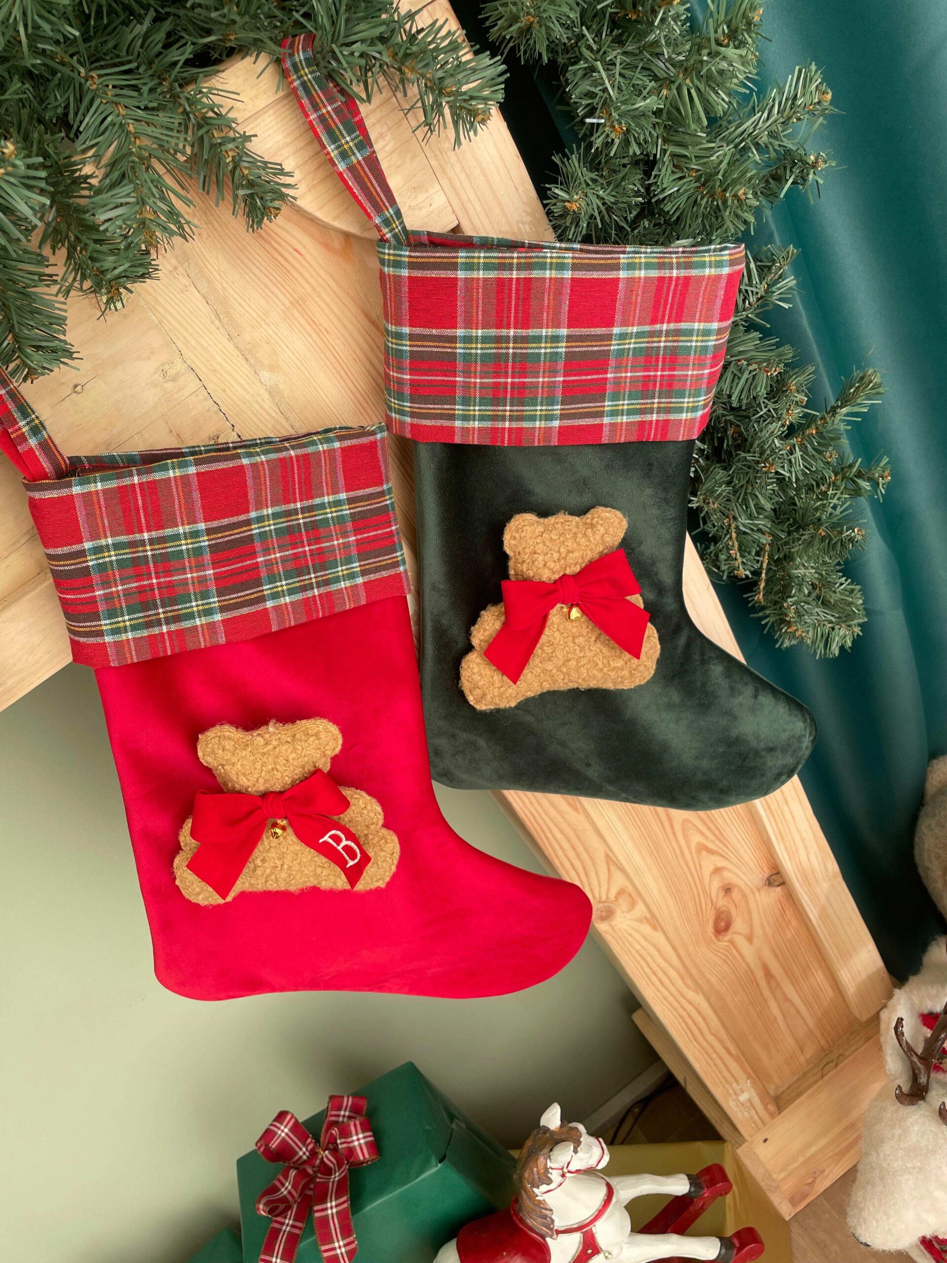 ✨ Calza Natalizia in Velluto con Orsetto Bouclè e Iniziale Ricamata ✨