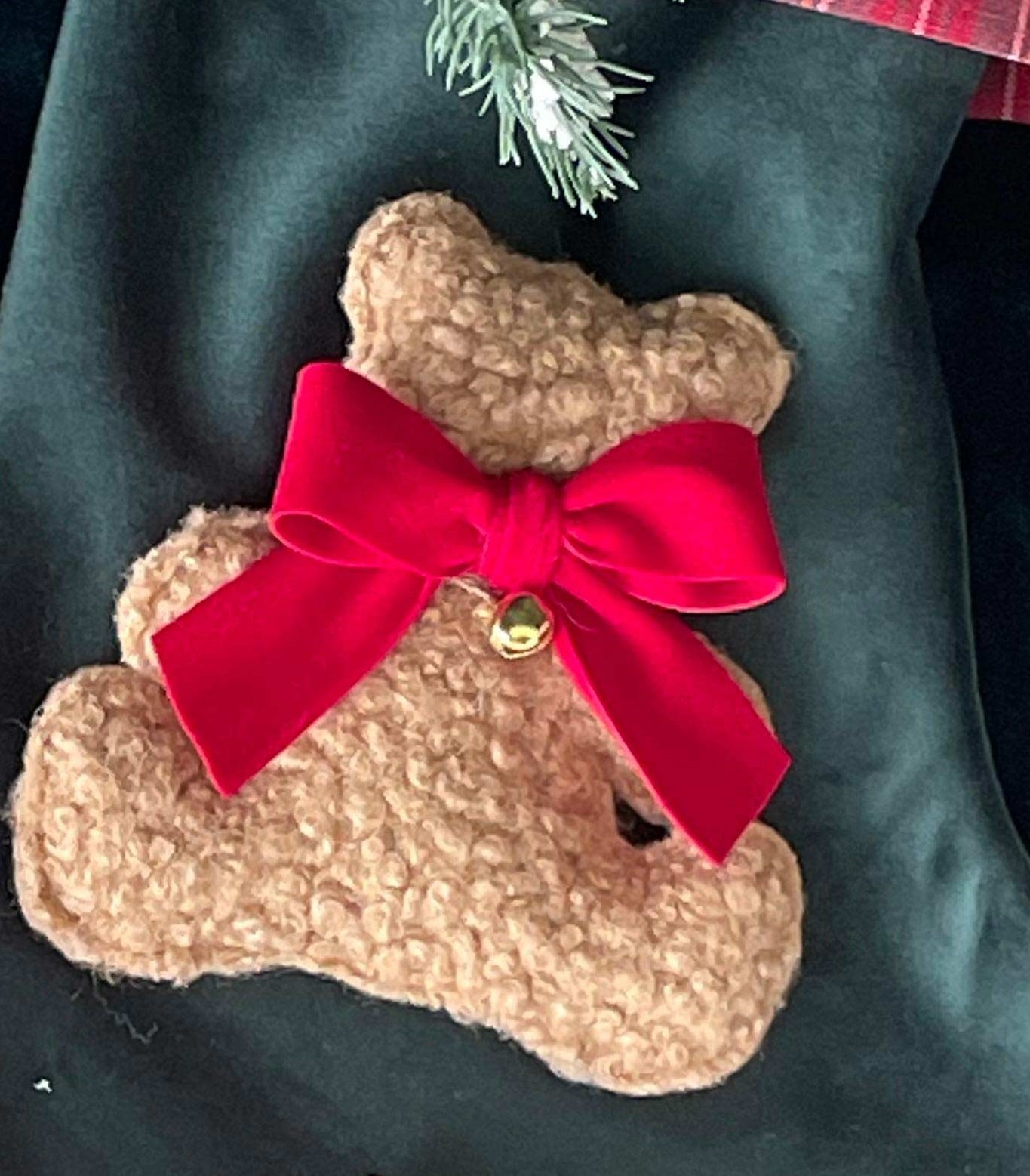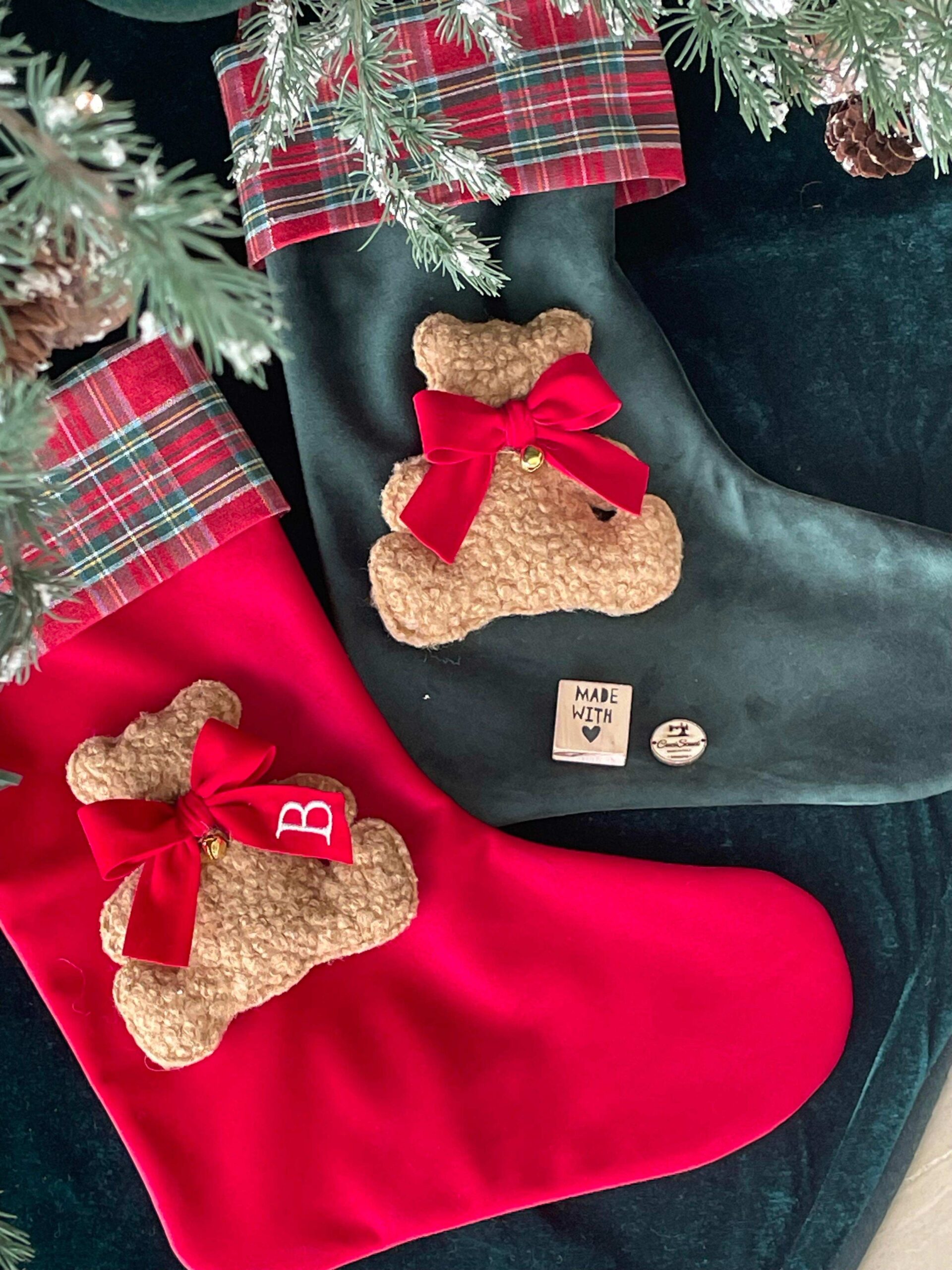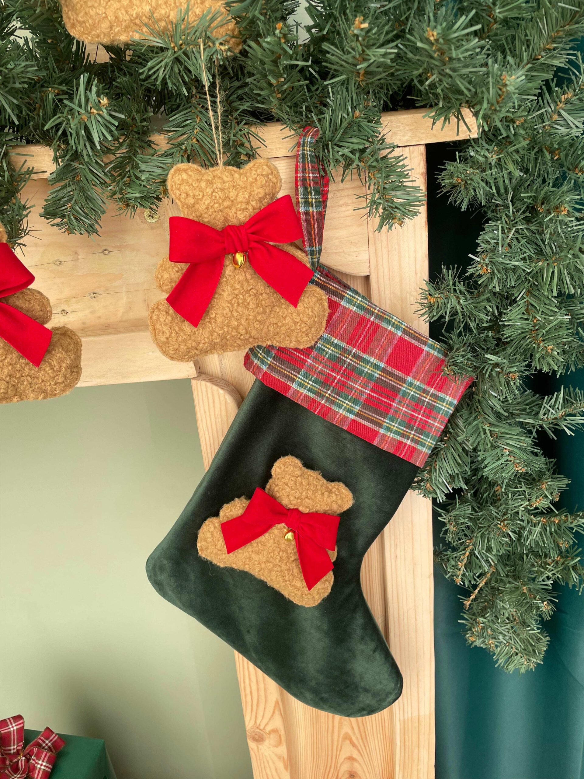 ✨ Calza Natalizia in Velluto con Orsetto Bouclè e Iniziale Ricamata ✨