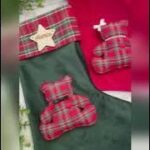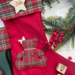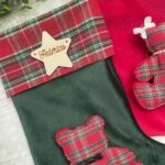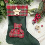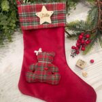 Calza natalizia in velluto con orsetto in tessuto tartan e targhetta personalizzata ✨