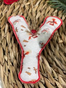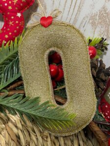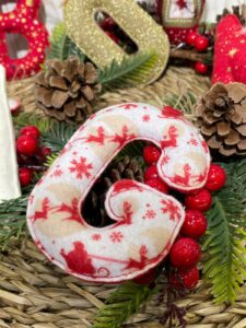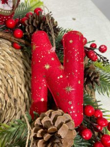 Lettera natalizia da appendere realizzata, con abilità e cura per il dettaglio dalla nostra sartoria, in pannolenci, in diverse fantasie natalizie a scelta.