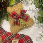 Un tenero orsetto decorativo realizzato in morbido tessuto bouclè, pensato per aggiungere un tocco dolce e raffinato alle decorazioni natalizie o agli spazi dedicati ai più piccoli.