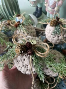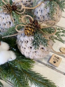 Decorata con dettagli raffinati come una pigna, un rametto verde e un fiocco in spago di juta, è perfetta per donare un tocco rustico e accogliente alle tue decorazioni natalizie.