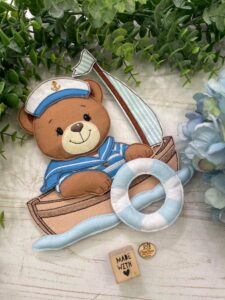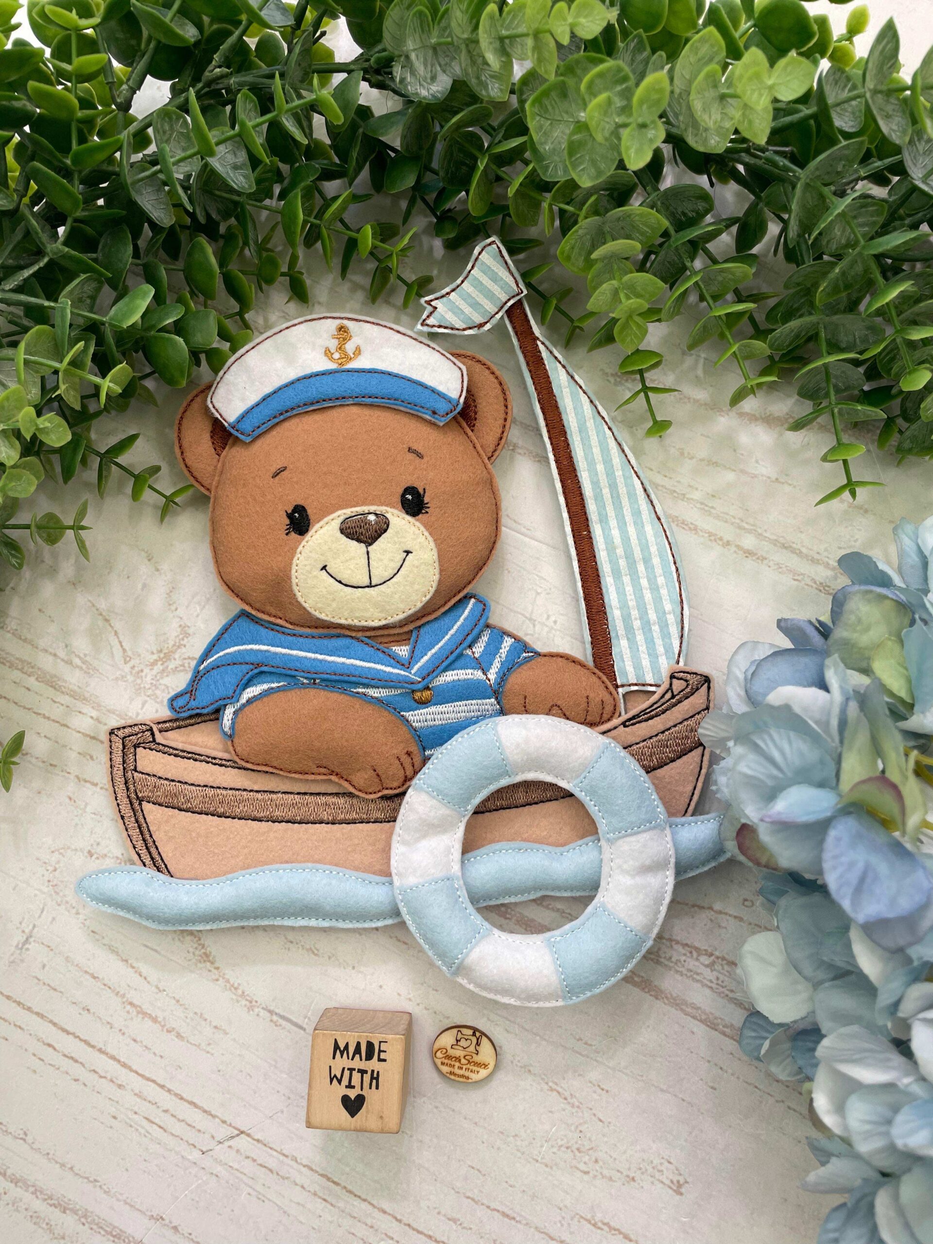 ✨ Personaggio in Pannolenci – Orsetto Marinaio su Barchetta a Vela ✨