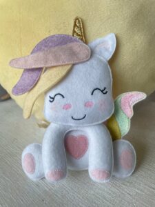 Un tenero unicorno con sfumature colorare realizzato in pannolenci.