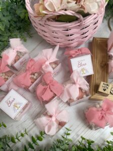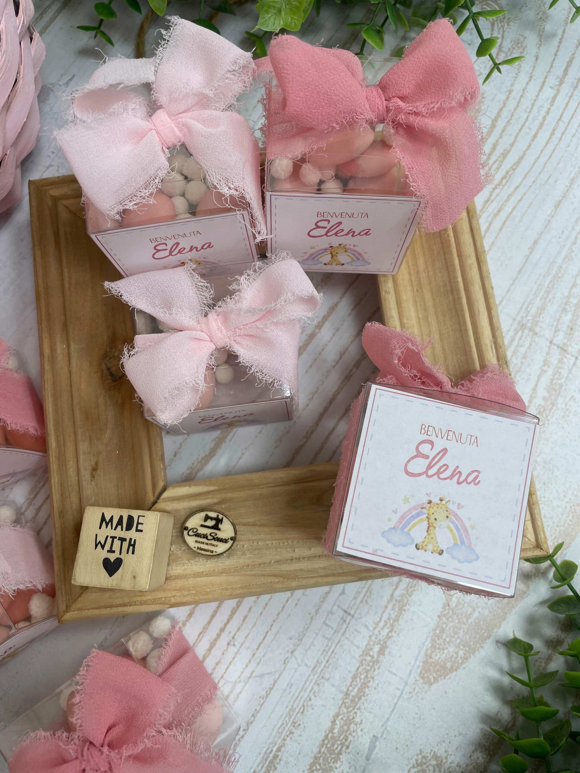 La trasparenza della scatolina valorizza la grafica delicata, mentre la cura artigianale dei dettagli rende questa bomboniera semplice ma raffinata, perfetta per eventi dedicati ai più piccoli e non solo. Ogni confezione è realizzata interamente a mano e personalizzabile, per adattarsi armoniosamente allo stile dell’evento.