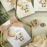 Un delicato porta confetti in cartoncino, decorato con grafica personalizzata a tema elefantino, pensato per accompagnare con dolcezza ed eleganza i momenti più importanti. Una bomboniera semplice ma curata, ideale per eventi dedicati ai più piccoli e alle loro famiglie.