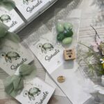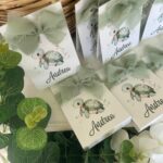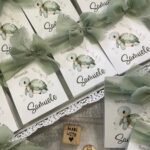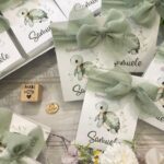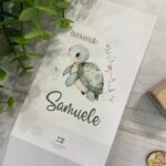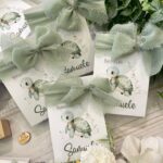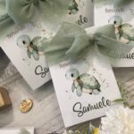 Un delicato porta confetti in cartoncino, impreziosito da una grafica personalizzata a tema tartarughina, pensato per accompagnare con dolcezza i momenti più importanti. Una proposta semplice ma curata, ideale per chi desidera una bomboniera raffinata e personalizzabile.