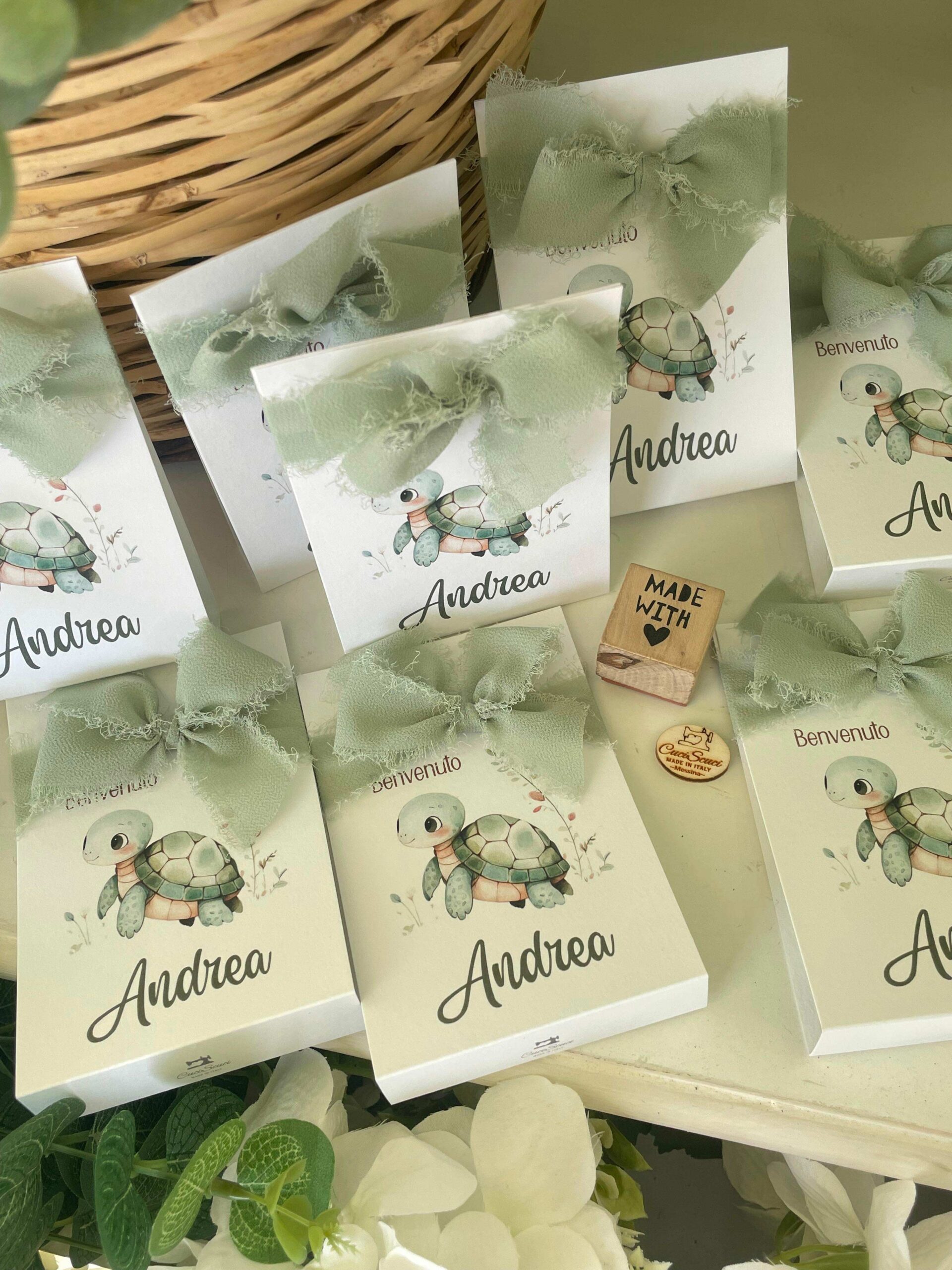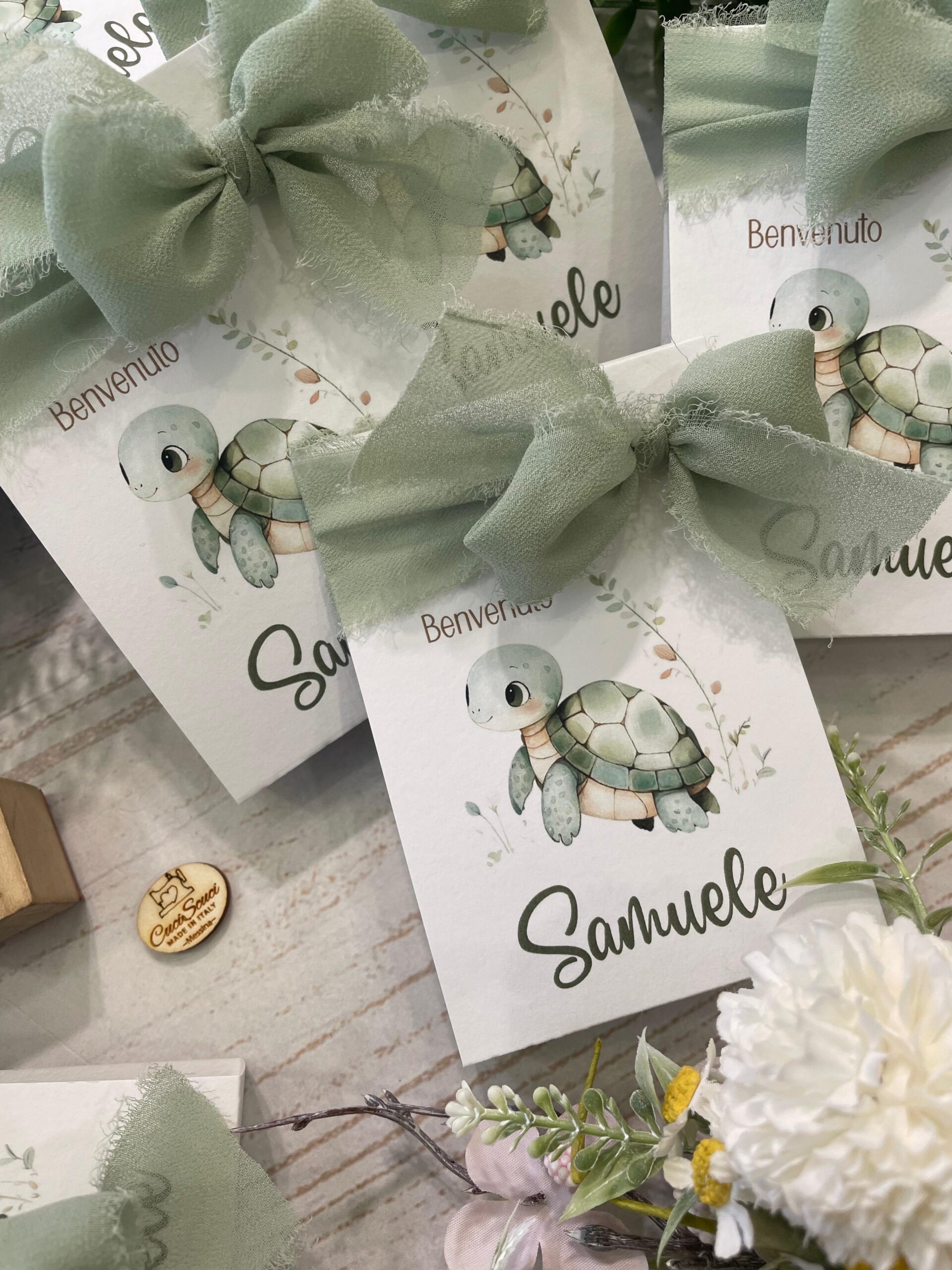 ✨ Porta Confetti in Cartoncino con Grafica Personalizzata – Tema Tartarughina ✨