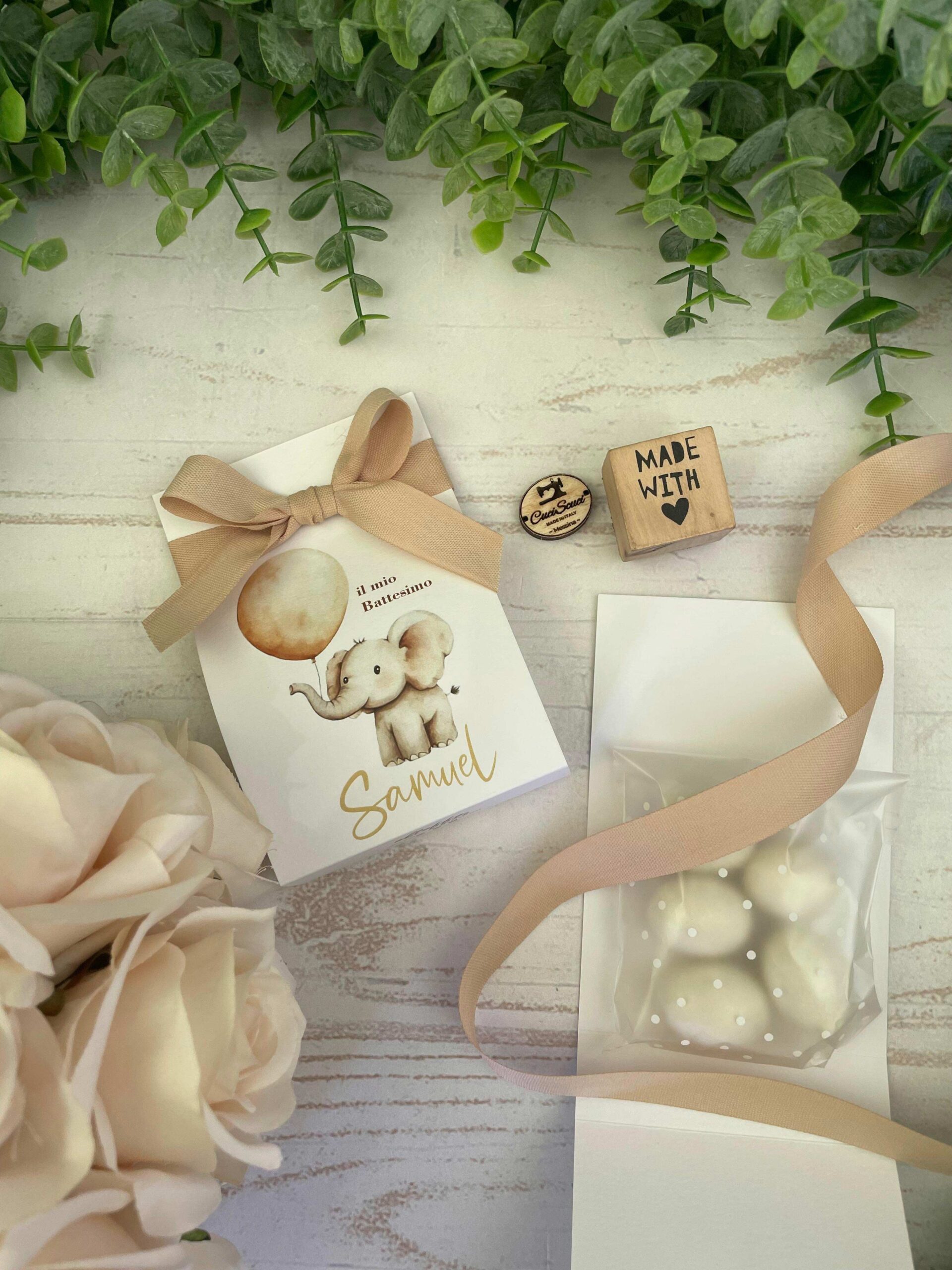 ✨ Porta Confetti in Cartoncino con Grafica Elefantino Personalizzata ✨
