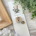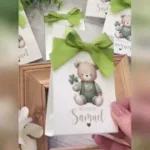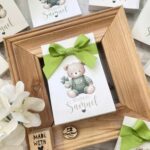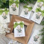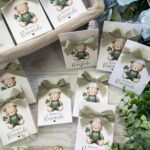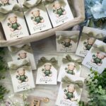 Un delicato porta confetti in cartoncino, impreziosito da grafica personalizzata a tema orsetto con quadrifoglio, pensato per accompagnare con armonia e originalità i momenti speciali della tua vita. Il design tenero e curato lo rende perfetto per celebrare occasioni importanti con uno stile raffinato.