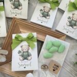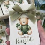 ✨ Porta Confetti in Cartoncino con Grafica Personalizzata – Tema Orsetto con Quadrifoglio ✨