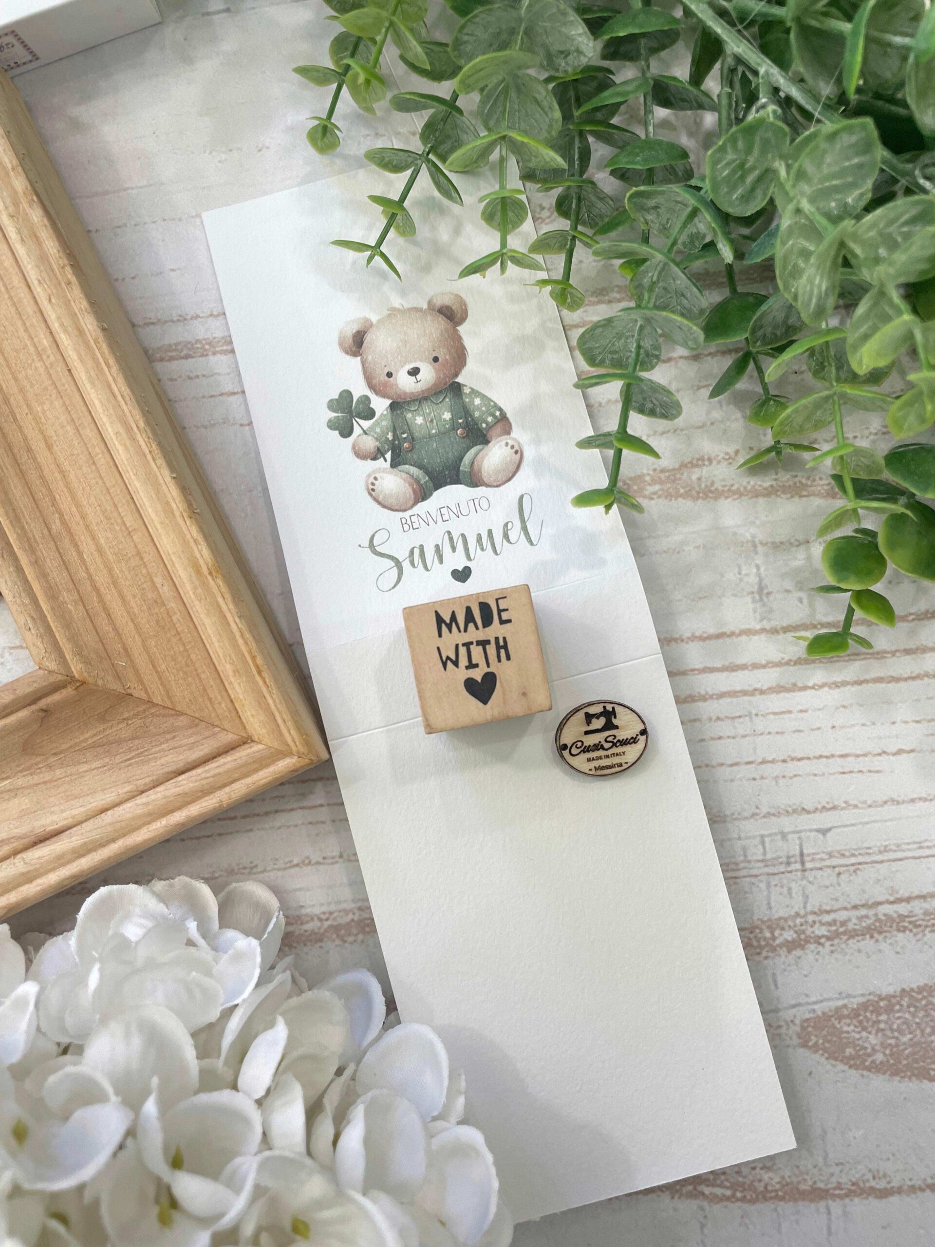 Solo cartoncino personalizzato, ideale per chi desidera completare la bomboniera in autonomia. Puoi scegliere se aggiungere il nastrino con un piccolo extra.